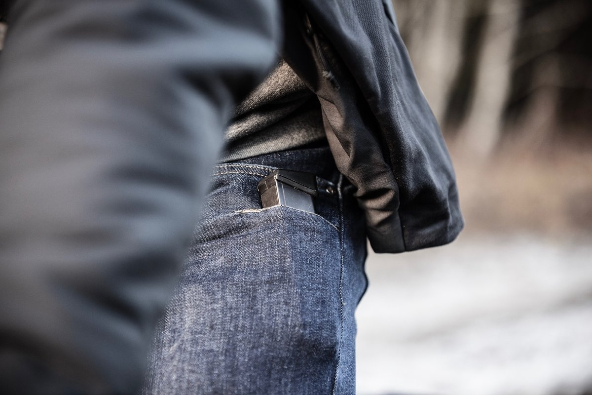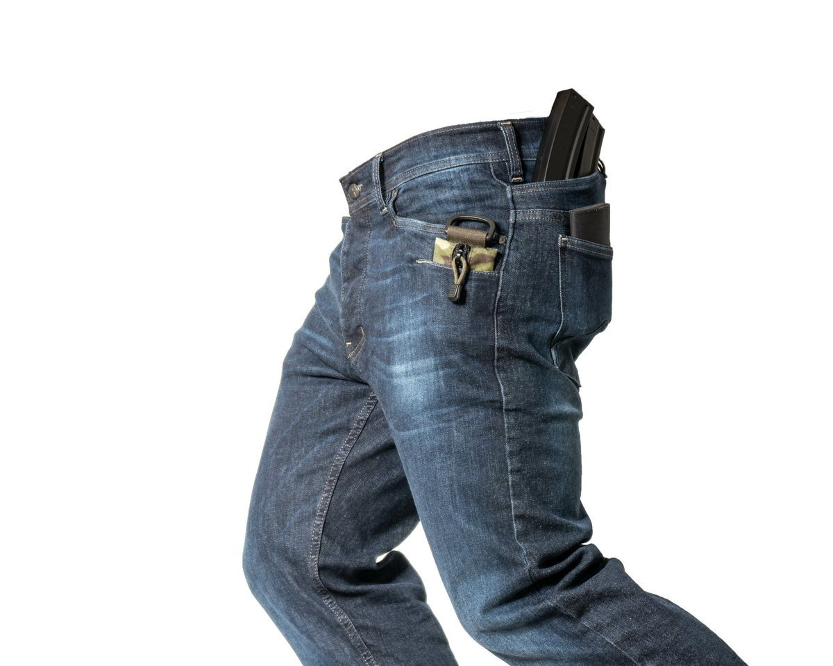 - MUD Blue Denim 2.0. Multi Utility Denim funkcjonalne taktyczne spodnie dżinsowe LMSGear. Design dostosowany do wymagań dotyczących skrytego przenoszenia broni palnej i akcesoriów EDC. Wykonane ze wstępnie spranej stone washed tkaniny w kolorze indygo blue