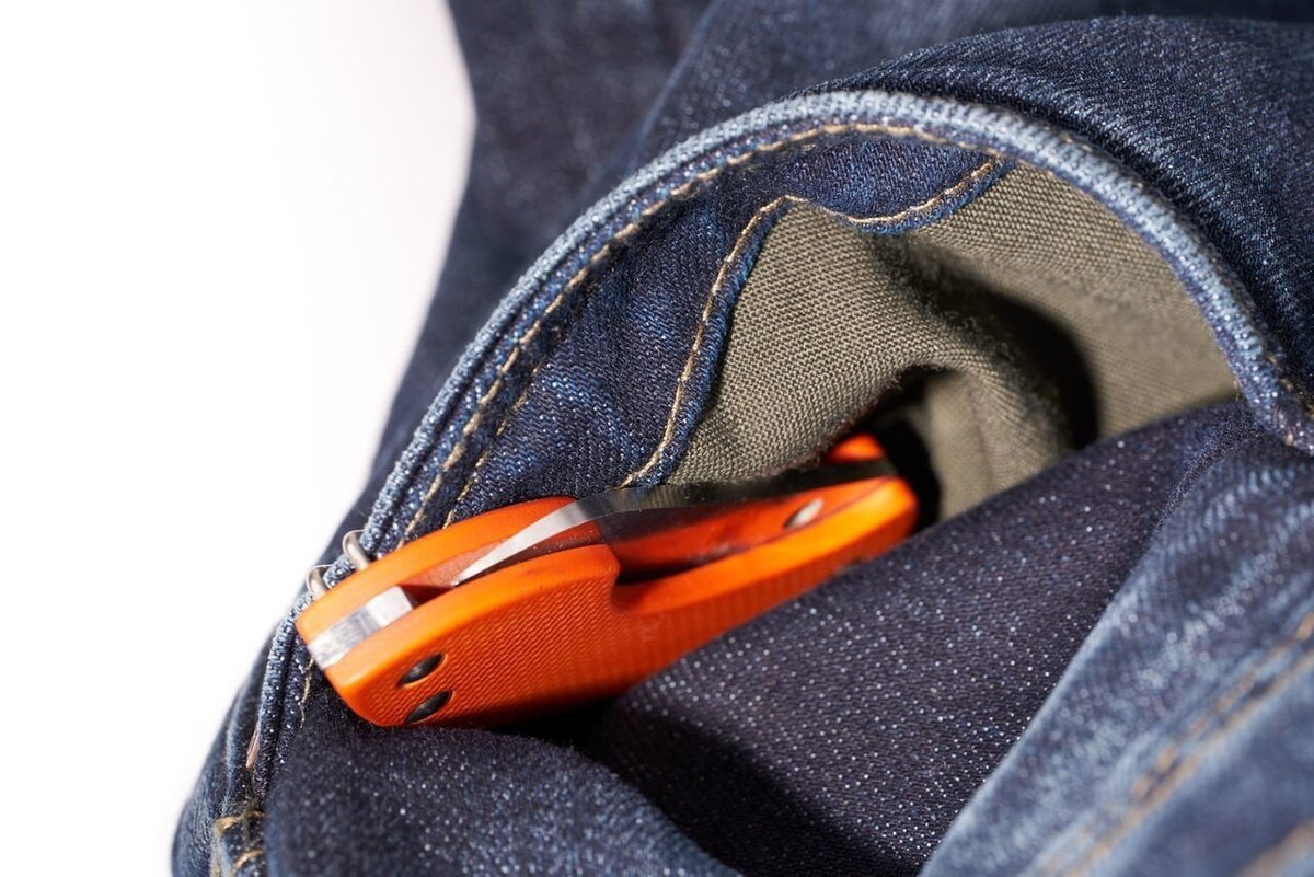 • wewnątrz spodni po lewej stronie, kieszeń na karty kredytowe, dokumenty ID lub na banknoty