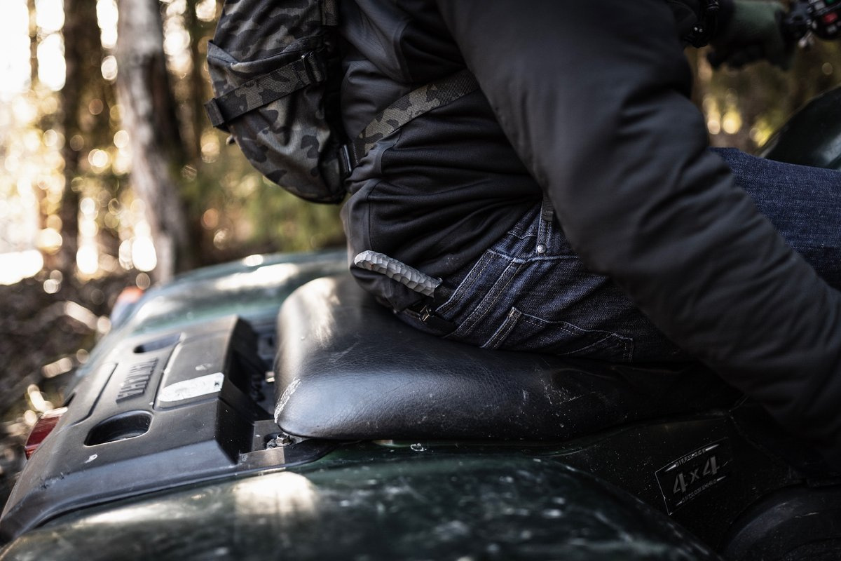 • nad tylnymi kieszeniami, 2 obszerne kieszenie na magazynki karabinowe od AR15 do AK47, apteczkę IFAK, duży smartfon nie wypada nawet gdy siedzisz, wszystko inne co ważne na co dzień nosisz ze sobą