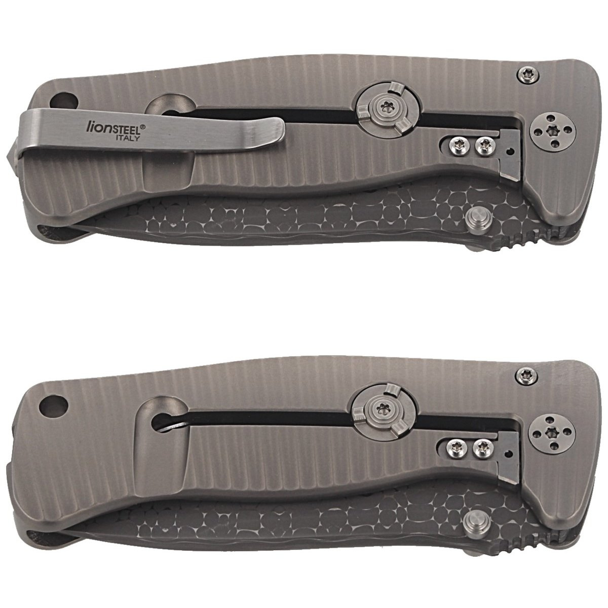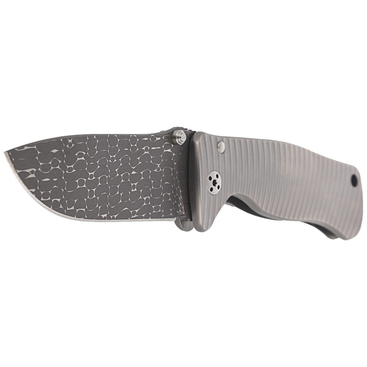 SR2DL Titanium Matte Natural Grey, Damascus Lizard Pattern lekki i wytrzymały kunsztowny folder E.D.C. włoskiej manufaktury LionSteel z technologią Solid®. Pomniejszona wersja słynnego SR-1, pierwszego noża składanego w ekskluzywnej technologii Solid Knife. Dowód wysokiego rozwoju technologicznego wykorzystywanego przy produkcji noży.