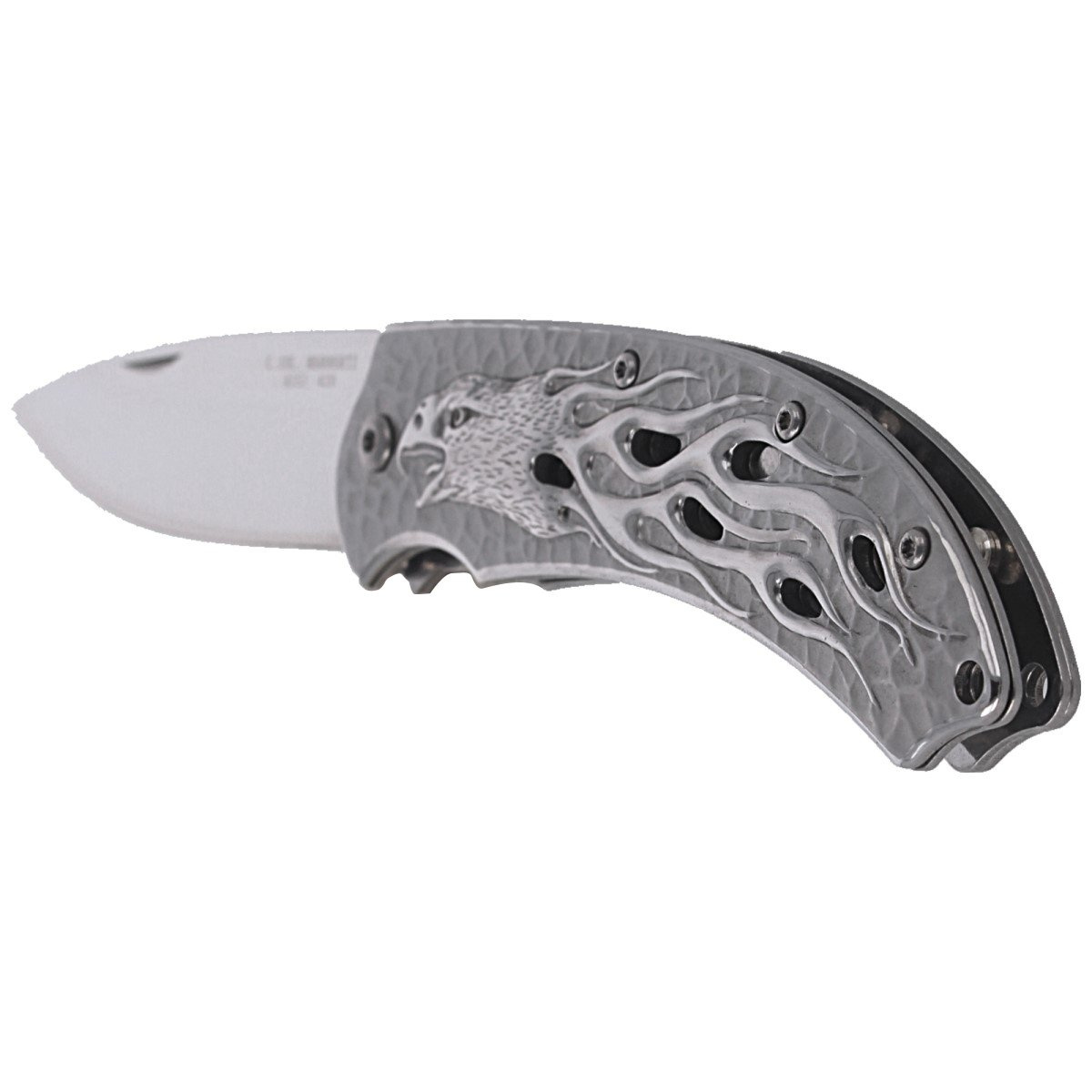 • Eagle Stainless Steel, Polished, duży nóż składany renomowanej firmy CJH Herbertz, z motywem orła na stalowej rękojeści. Głownia typu drop point wykonana ze stali nierdzewnej 420, zapewnia, że nóż wykona każdą pracę jaką przed nim postawisz!