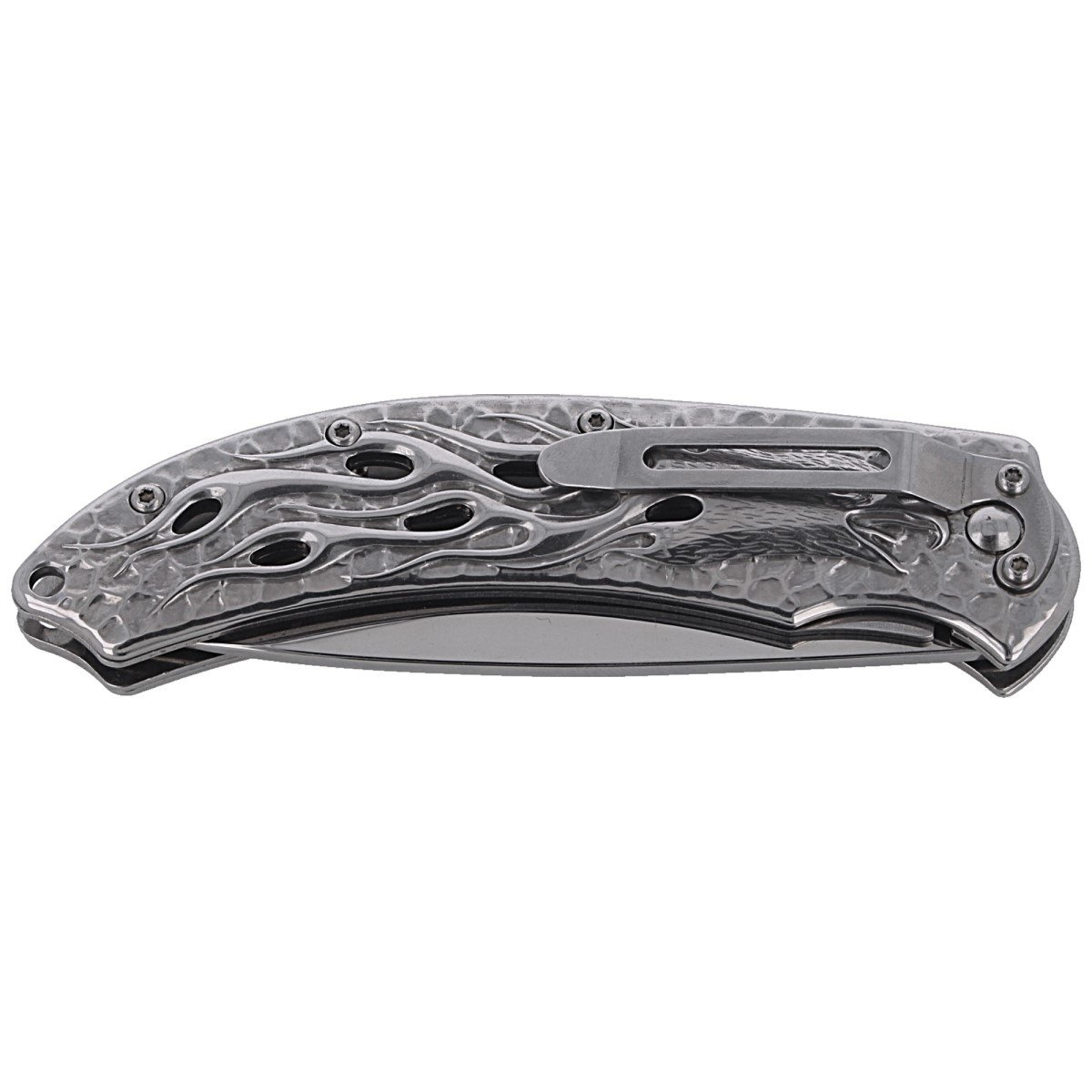 Herbertz CJH Eagle Stainless Steel, Polished to nóż składany, który łączy w sobie elegancję i funkcjonalność. Ten duży nóż, wyprodukowany przez renomowaną firmę CJH Herbertz, wyróżnia się nie tylko solidną konstrukcją, ale także estetycznym designem, który przyciąga wzrok. Rękojeść wykonana ze stali nierdzewnej, ozdobiona motywem orła, nadaje mu unikalny charakter i zapewnia pewny chwyt, co jest kluczowe podczas użytkowania. Głownia typu drop point, wykonana z wysokiej jakości stali nierdzewnej 420, charakteryzuje się doskonałą odpornością na korozję oraz wytrzymałością, co sprawia, że nóż jest niezawodnym narzędziem w różnych warunkach. Dzięki swojej konstrukcji, nóż ten doskonale sprawdzi się zarówno w codziennym użytkowaniu, jak i podczas wypraw turystycznych. Mechanizm blokady zapewnia bezpieczeństwo podczas pracy, a sposób otwierania przy pomocy nail nicka powoduje, że nóż jest legalny w wielu krajach, gdzie obowiązuje zakaz noszenia noży otwieranych jedną ręką. Herbertz CJH Eagle Stainless Steel, Polished to niezastąpiony towarzysz każdego, kto ceni sobie jakość i niezawodność.