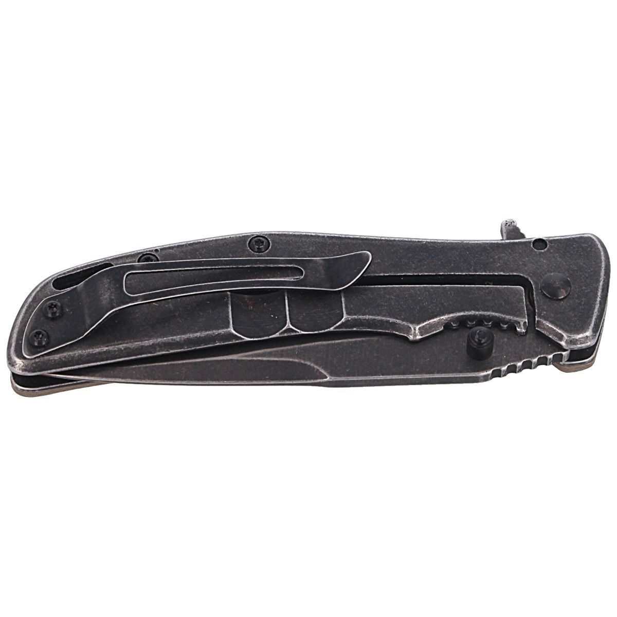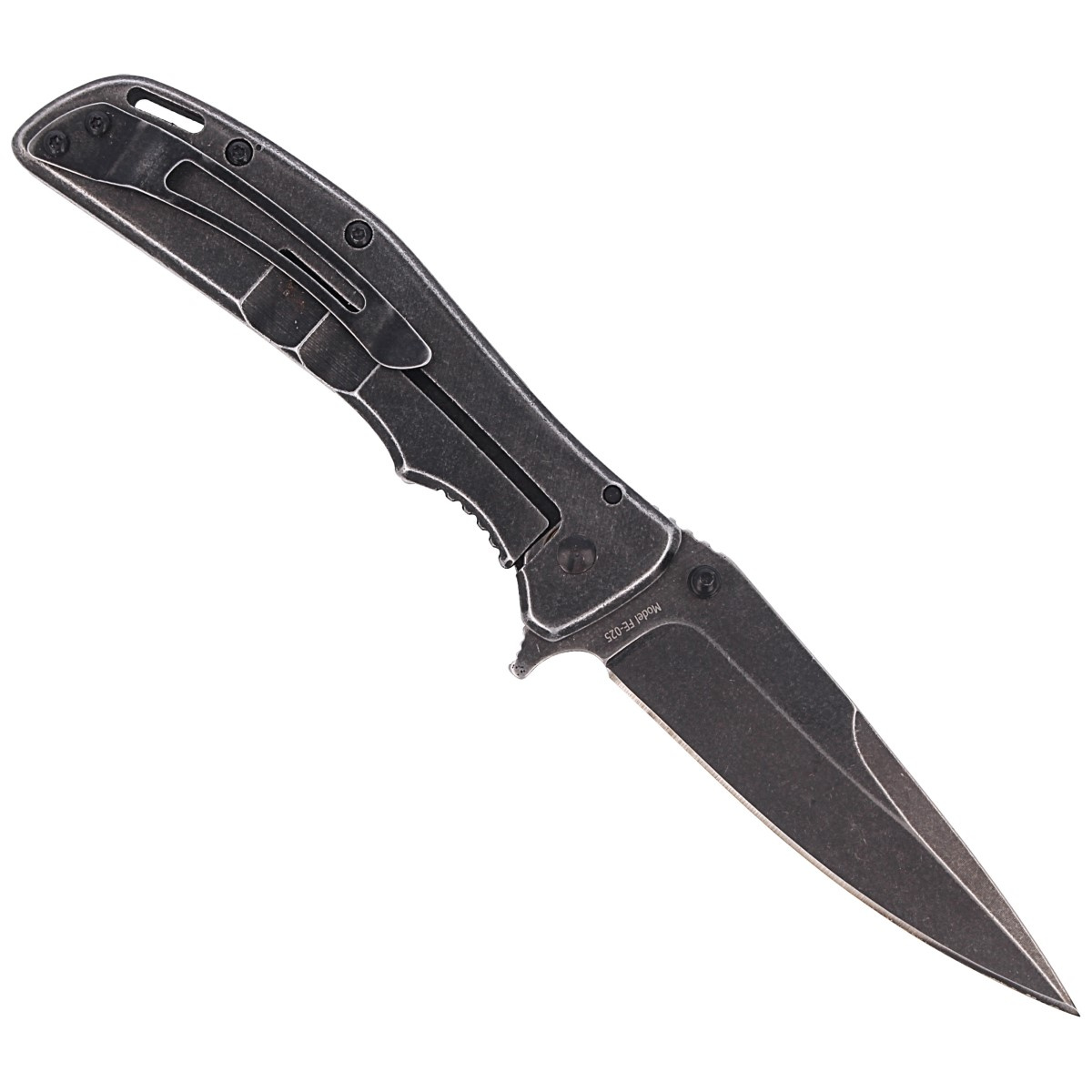 Głownia - grubości 3 mm o profilu Clip Point, zapewnia doskonałą geometrię krawędzi tnącej przy niskim oporze. Klinga wykonana z dobrze trzymającej ostrość stali nierdzewnej 8Cr13MoV (odpowiednik japońskiej stali AUS-8). Ostrze gładkie typu Plain wyprowadzono szlifem wklęsłym (Hollow Grind) zapewniającym doskonałe właściwości tnące oraz redukcję wagi. Eliminująca odblaski powłoka Black Stonewash. Obustronny kołek w klindze (Thumb Stud) pozwala na otwarcie noża nawet gdy dłonie są śliskie czy zmarznięte. Dodatkowo nóż można otwierać za pomocą flippera. Obie metody są przystosowane do obsługi zarówno prawą jak i lewą ręką. Karbowane podparcia: rampa pod kciuk (spine jimping) oraz finger choil jimping, podcięcie pod palec wskazujący na blokadzie.