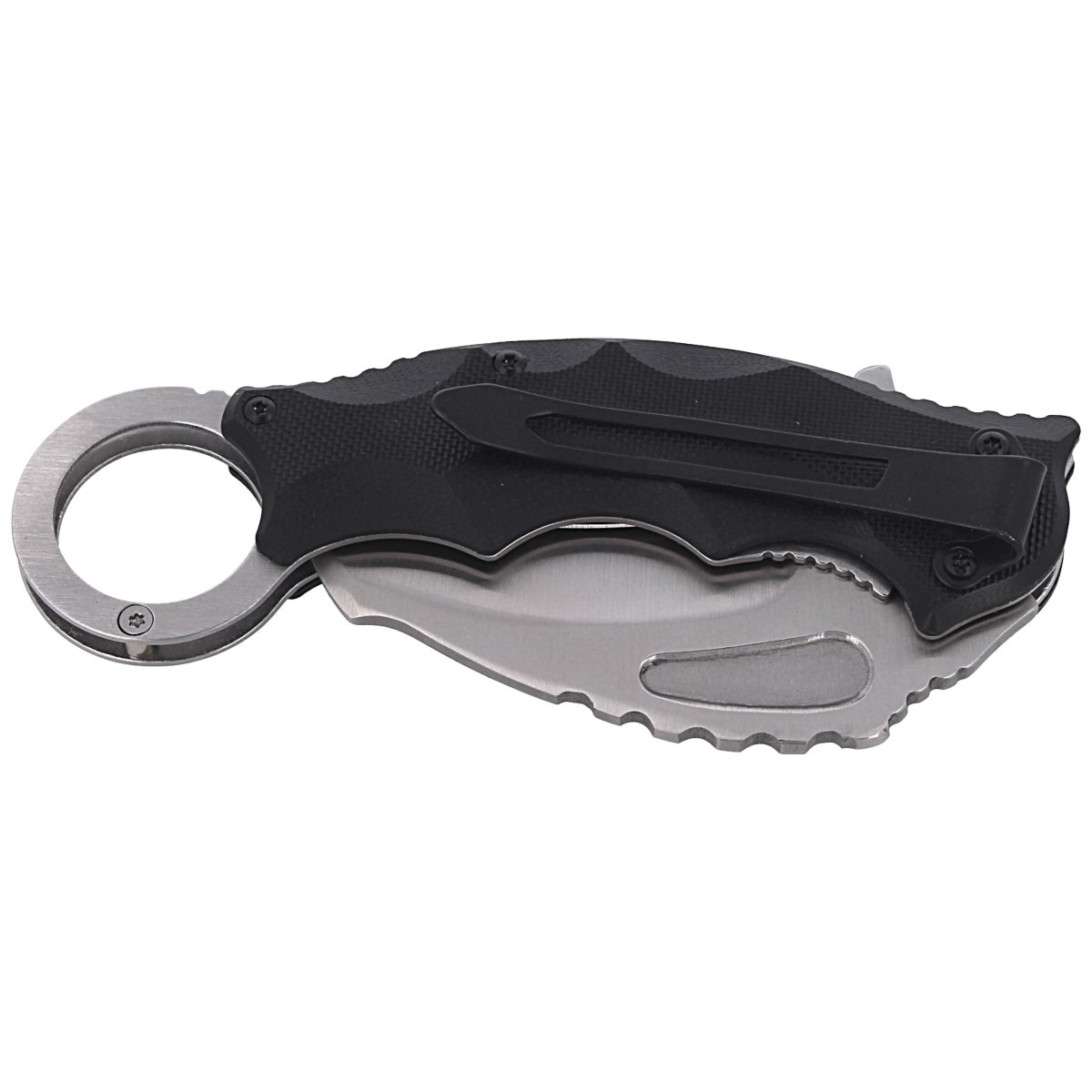 Karambit - rodzaj noża, który narodził się w Indonezji, korzeniami sięgając Malezji i Filipin. Charakteryzuje się pierścieniem na palec oraz sierpowatym kształtem ostrza, które cechuje ogromna skuteczność cięcia - naśladuje sposób rozszarpywania przez szpon orła lub pazur tygrysa. Używany jako nóż roboczy oraz do obrony, jeśli zajdzie taka konieczność.