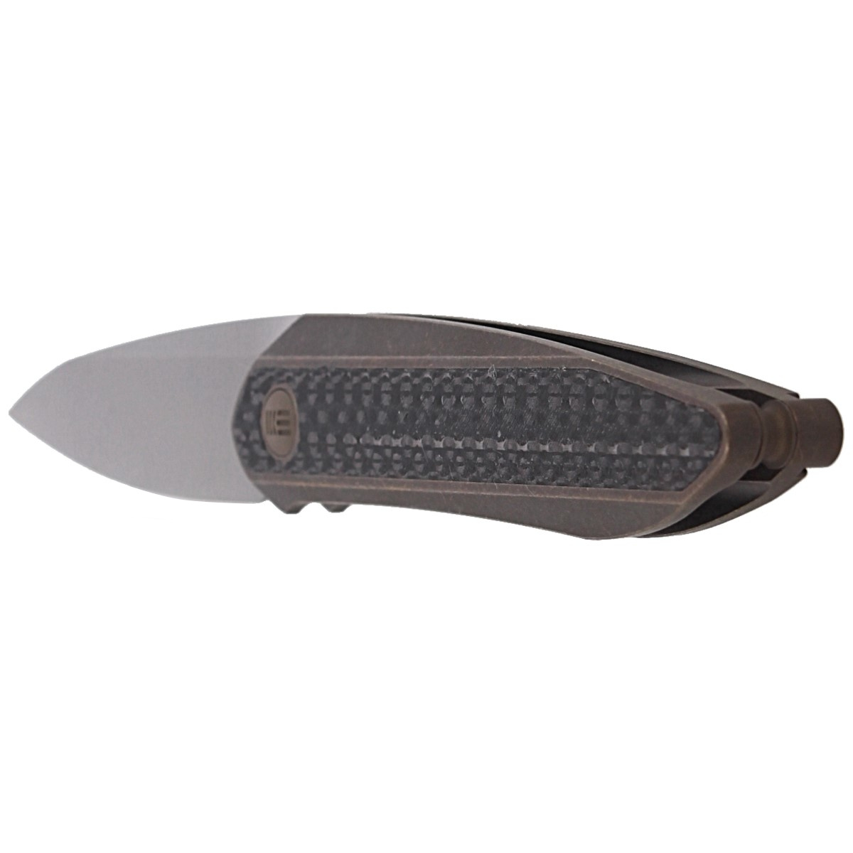 Black Void Opus, Bronze Titanium with Twill Carbon Fiber Inlay ultralekki 78.0 g kompaktowy nóż z z jednostronnym ostrzem (Single Edge). Łatwy do przenoszenia, kunsztowny folder WeKnife ze smukłą głownią zakończoną porażająco ostrym sztychem, który znajduje się dokładnie w linii z środkiem noża, co zapewnia maksymalną skuteczność. Projekt cenionego amerykańskiego knifemaker'a Justina Lundquista.