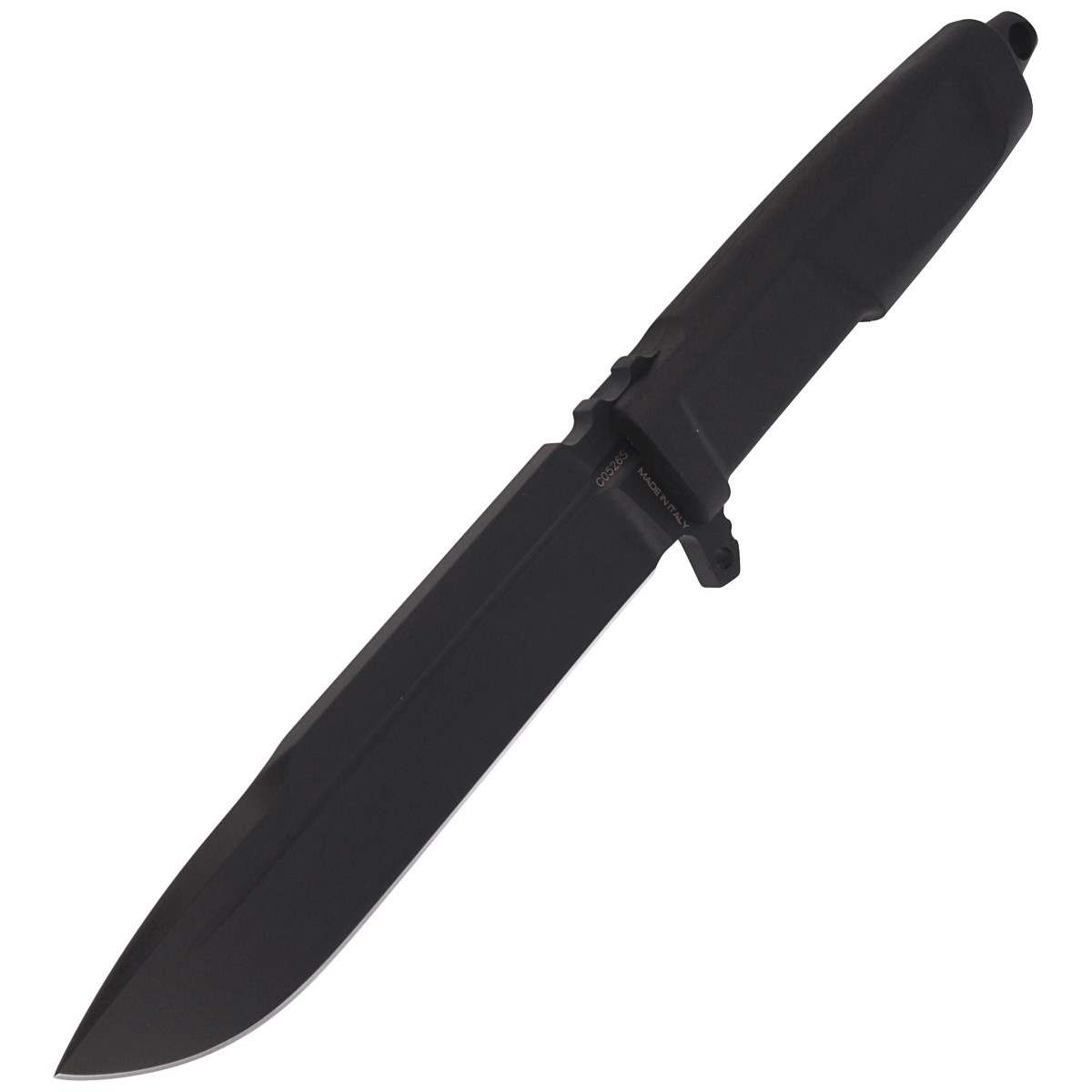 Głownia - typu Drop Point ze wzmocnionym czubkiem przydatnym do ciężkich prac. Klingę pokryto chemicznie nierefleksyjną powłoką MIL-C-13924 Burnishing. Ostrze gładkie Plain wyprowadzono wysokim szlifem płaskim (Flat grind). Wysoki szlif zapewnia doskonałą geometrię krawędzi tnącej, a fałszywe ostrze ułatwia penetrację. Upper jimping długie teksturowane podparcie pod kciuk, a także single finger guard jednostronny jelec / osłona chroniąca dłoń przed zsunięciem się na ostrze.