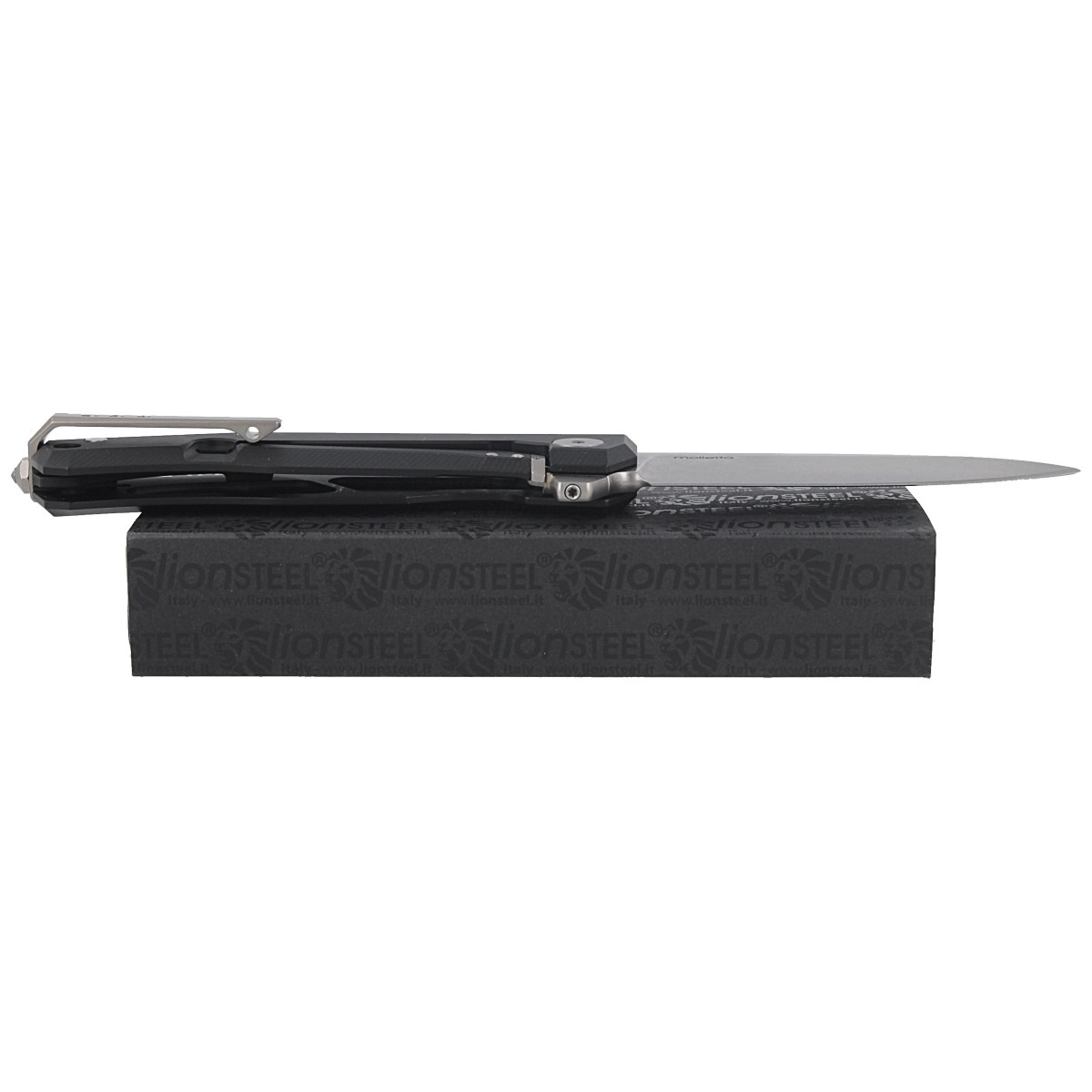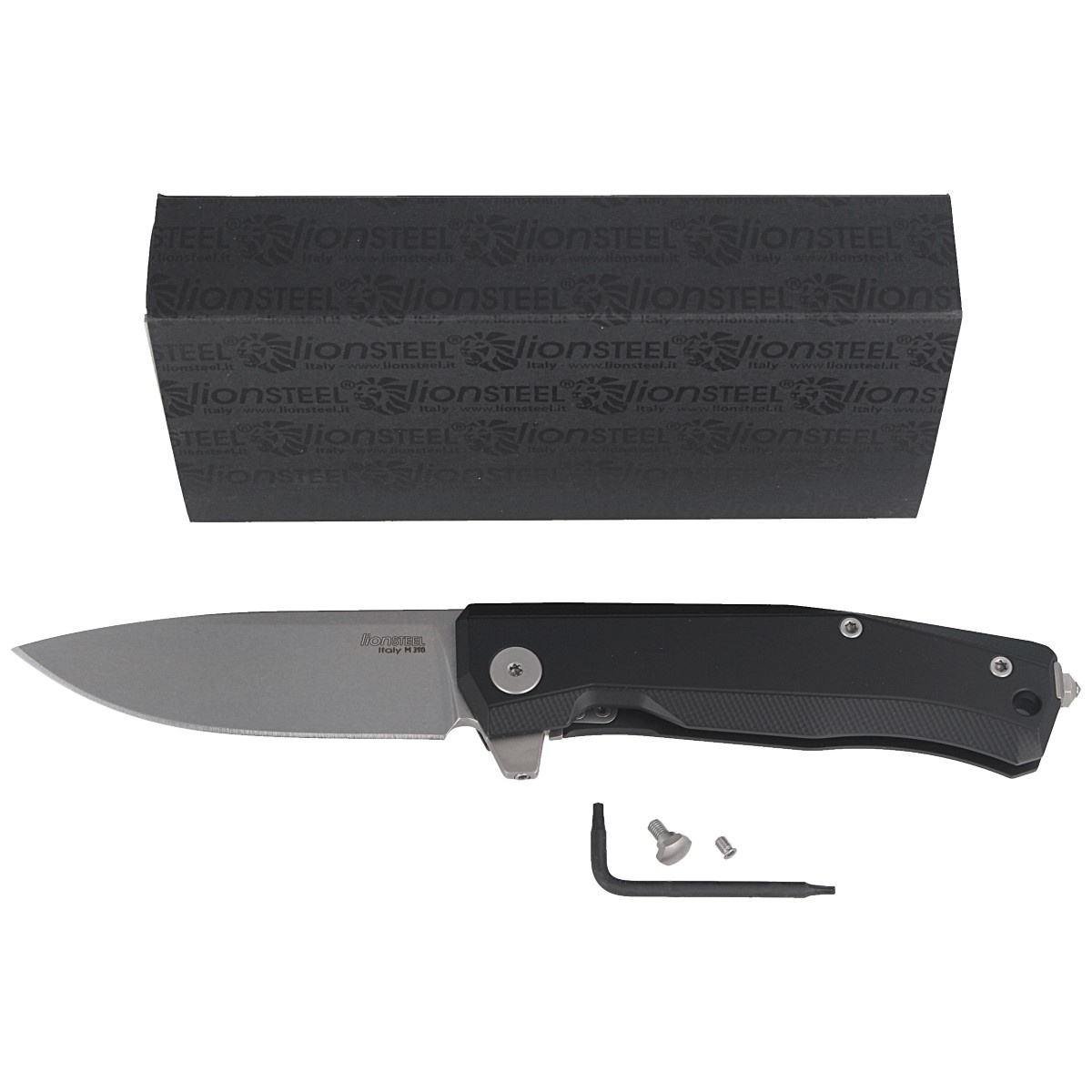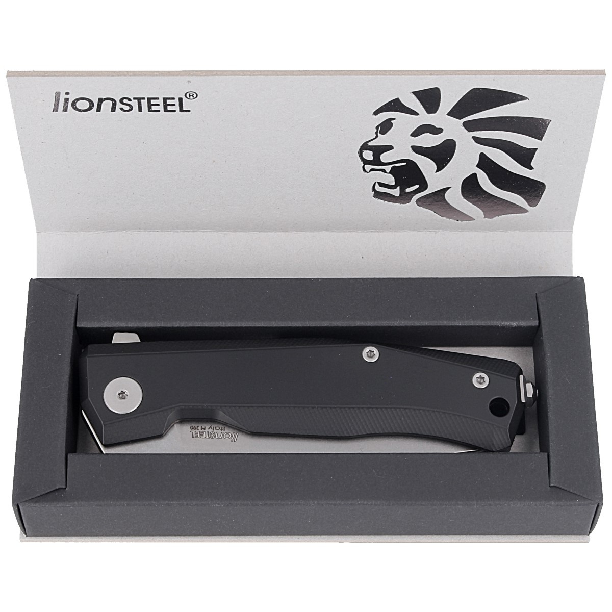 Myto Black Aluminium, Stone Washed, zaawansowany technicznie folder Hi-Tech z wytrzymałą blokadą frame-lock. Wyjątkowy nóż E.D.C. włoskiej manufaktury LionSteel. Wyposażony w ostrze ze stali proszkowej M390, umieszczoną na spodzie głowni płetwę „ReF”, system łożysk kulkowych Double Crown oraz tytanowy klips. W zestawie klucz do regulacji śrub Torx T6, Torx 8.