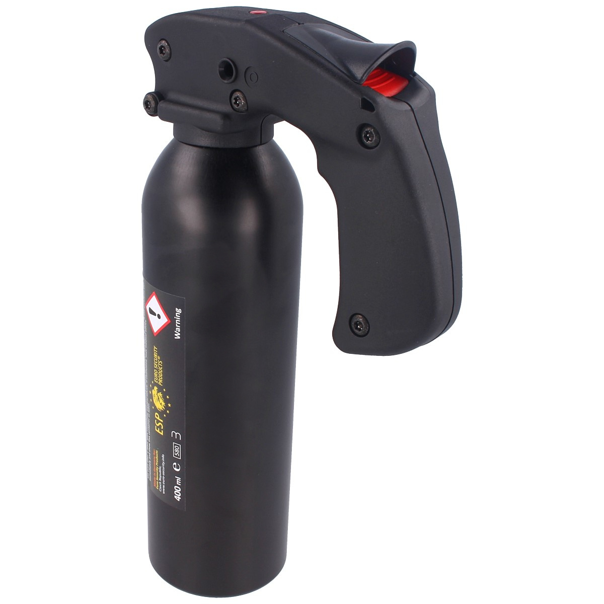 Typhoon Jet Pepper Spray, ręczny miotacz gazu pieprzowego firmy ESP o pojemności 400 ml. Wyprodukowany w Niemczech, niepalny gaz przeznaczony do profesjonalnych zastosowań. Największa pojemność umożliwia wielokrotne użycie, a tym samym skuteczną obronę nawet przed grupą napastników, będącą również pod wpływem alkoholu lub środków psychoaktywnych. Sprawdza się podczas obrony mienia oraz miru domowego. Skład chemiczny dobrano tak, aby był równie skuteczny przeciw agresywnym zwierzętom.