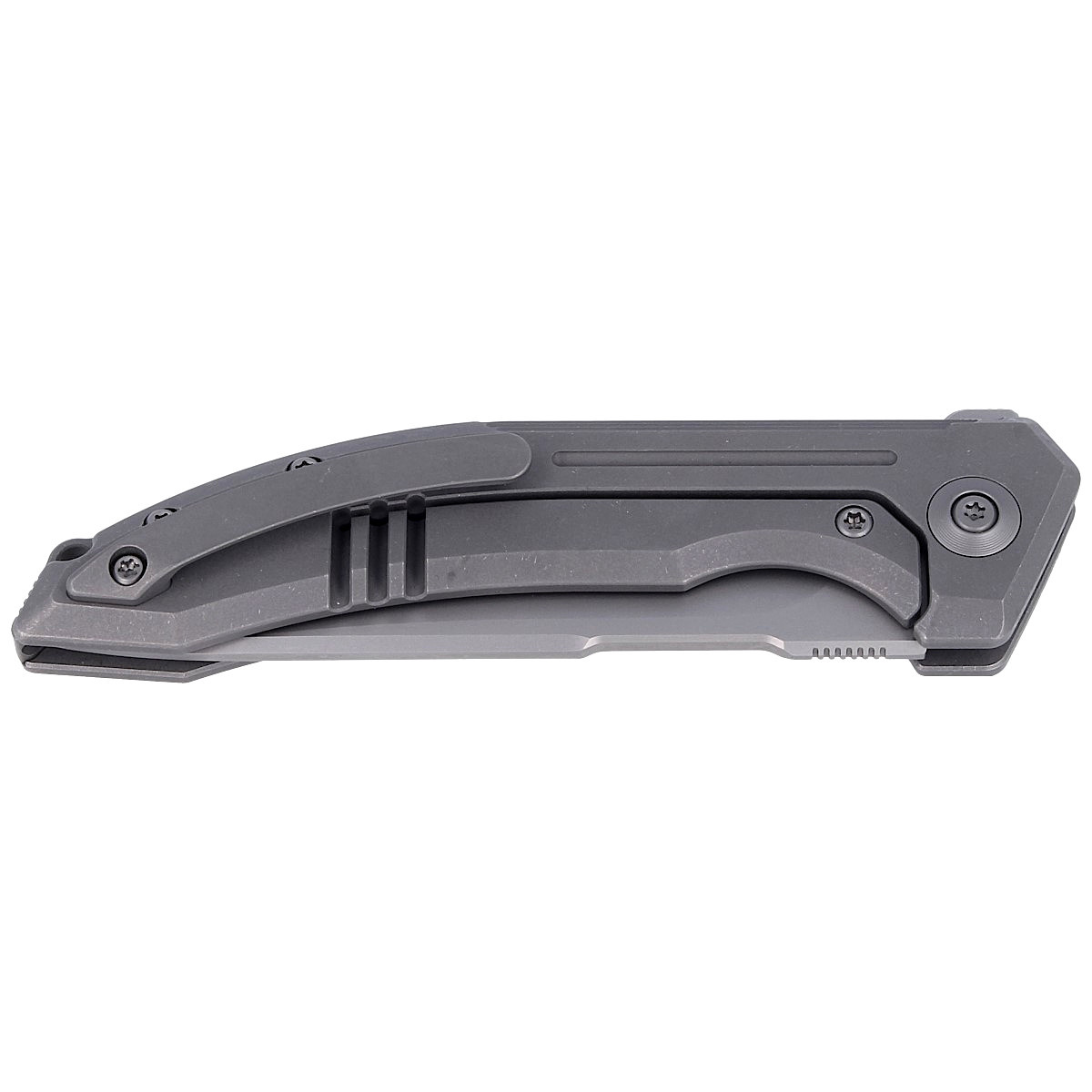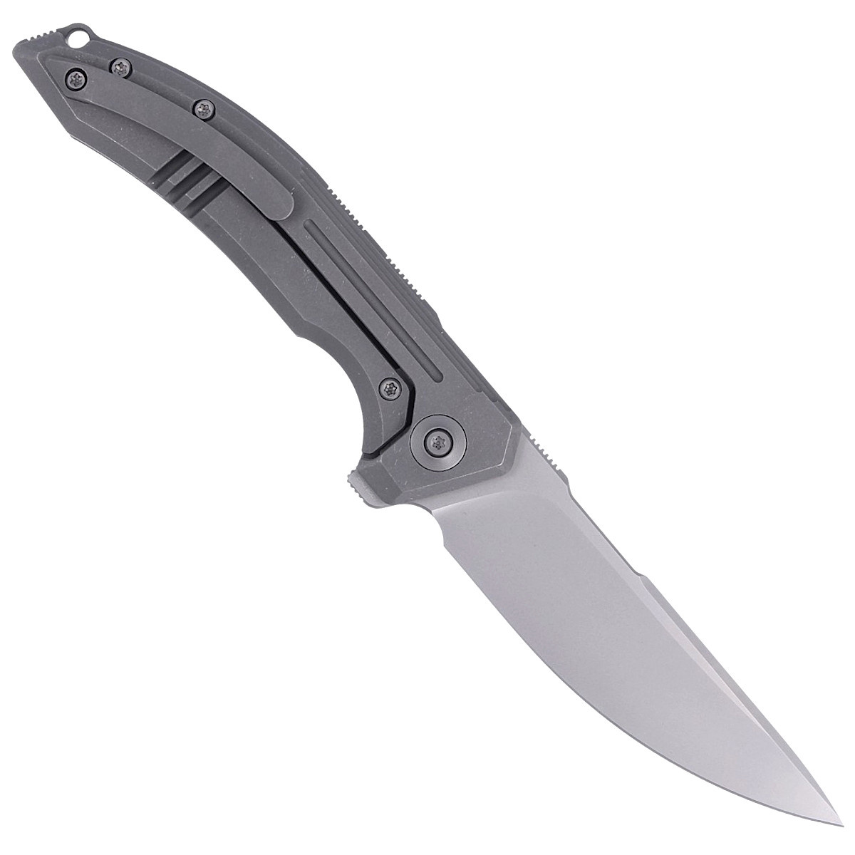 - Quixotic Gray Ti, Silver Bead Blasted najwyższej jakości nóż EDC. Agresywna głownia Drop Point ze stali CPM 20CV. Otwierany szybką płetwą Flippera, okładziny z tytanu, ceramiczne łożyska. Bestseller!