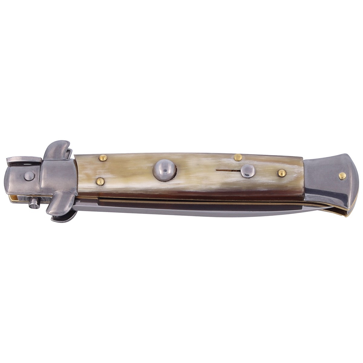 - Stiletto Honey Horn 23cm. Ręcznie składany kultowy włoski nóż sprężynowy okładki z naturalnego rogu. Folder podczas otwarcia ostrza w ciągu setnych sekundy wydaje charakterystyczny klik odróżniający go od innych noży automatycznych.