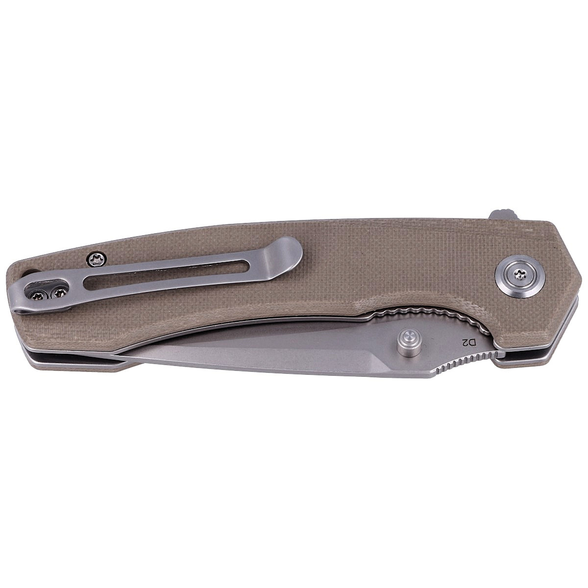 Calyce, Tan G10, Bead Blasted D2 podręczny, mocny nóż EDC. Głownia drop point ze stali D2,, szybka płetwa Flippera lub dwustronny kołek do otwierania oraz rękojeść z G10. Znakomity stosunek jakości do ceny! Bestseller!