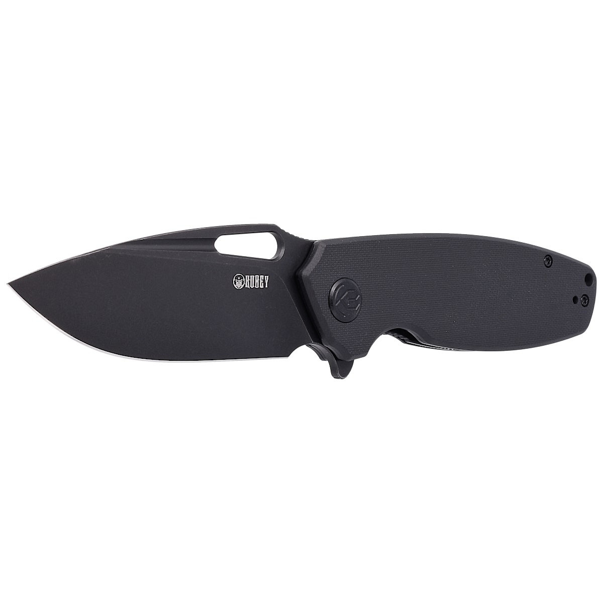 Rękojeść - okładziny z czarnego G10 (włókno szklane prasowane pod ciśnieniem z syntetyczną żywicą),teksturowane dla poprawienia pewności uchwytu, przykręcono do stalowej ramy noża. Otwarta konstrukcja tzw. open-backed mocowana do siebie stalowymi tulejami dystansowymi zmniejsza wagę oraz ułatwia czyszczenie. Prosta, solidna konstrukcja daje pewność wieloletniego użytkowania. Głębokie podcięcie na palec (fore finger groove) poprawia pewność uchwytu. Oś pivota zdobi stylizowane logo marki Kubey Knife. Dwupozycyjny (prawa/lewa) metalowy klips deep carry pozwala przenosić dyskretnie nóż w kieszeni w pozycji tip-up (czubkiem ostrza do góry). Nad klipsem lanyard hole, otwór do przewleczenia linki zabezpieczającej lub ozdobnej.