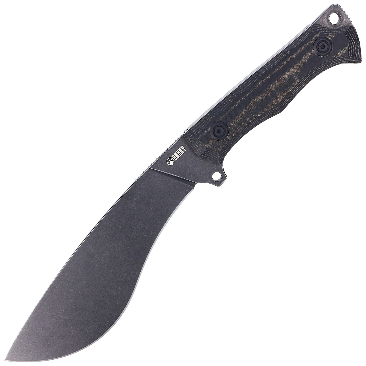 Głownia - szeroka o uniwersalnym kształcie Kukri i grubości 5.5 mm z wyraźnie zaznaczonym brzuchem krawędzi tnącej. Gładkie ostrze Plain wyprowadzone szlifem płaskim (Flat Grind) i wykończono maskującą rysy i likwidującą odbłyski metodą Dark Stonewashed. Na grzbiecie klingi upper jimping, karbowane oparcie pod kciuk.