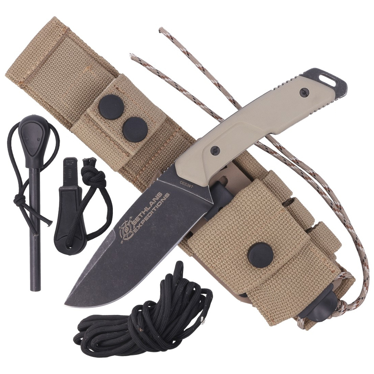 Akcesoria dodatkowe: Krzesiwo, paracord, podpałka