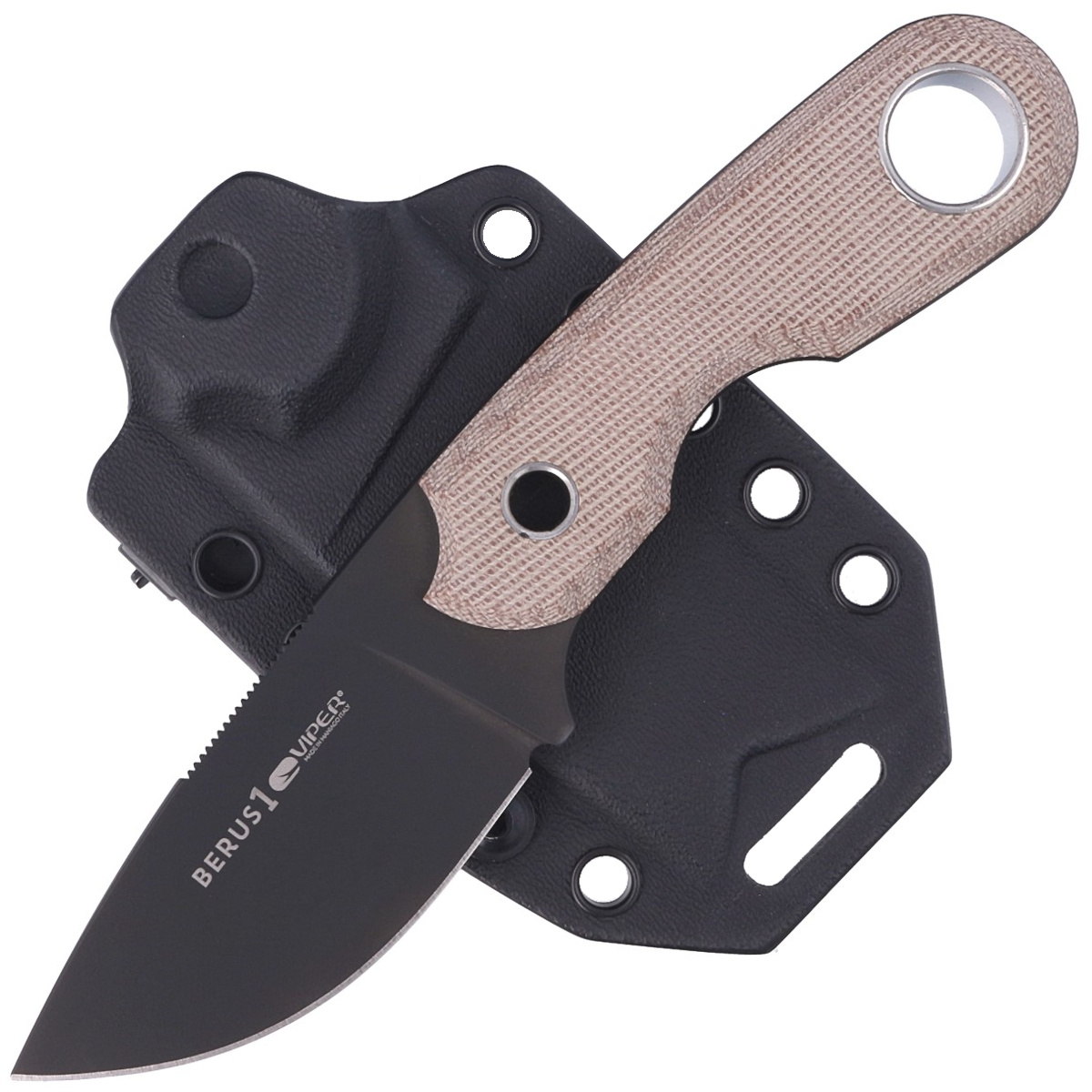 Berus 1 Natural Canvas Micarta, design by Tommaso Rumici. Kuty z jednego kawałka stali, lekki 95 g kompaktowy wielofunkcyjny nóż włoskiej marki Viper. Charakteryzuje się wygodnym uchwytem oraz ostrym jak brzytwa, krótkim mocnym ostrzem z zaokrągloną krawędzią tnącą.