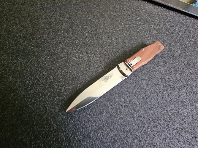 Piękny nóż, wersja z rękojeścią z polerowanego drewna i ostrzem wykończonym na lustro jest lepiej wykonana i prezentuje się o klasę wyżej niż z plastikowymi okładzinami. Ostrze ze stali N690 to przeskok generacyjny wobec pierwszych noży Mikov. Gorąco polecam! Jestem bardzo zadowolony!