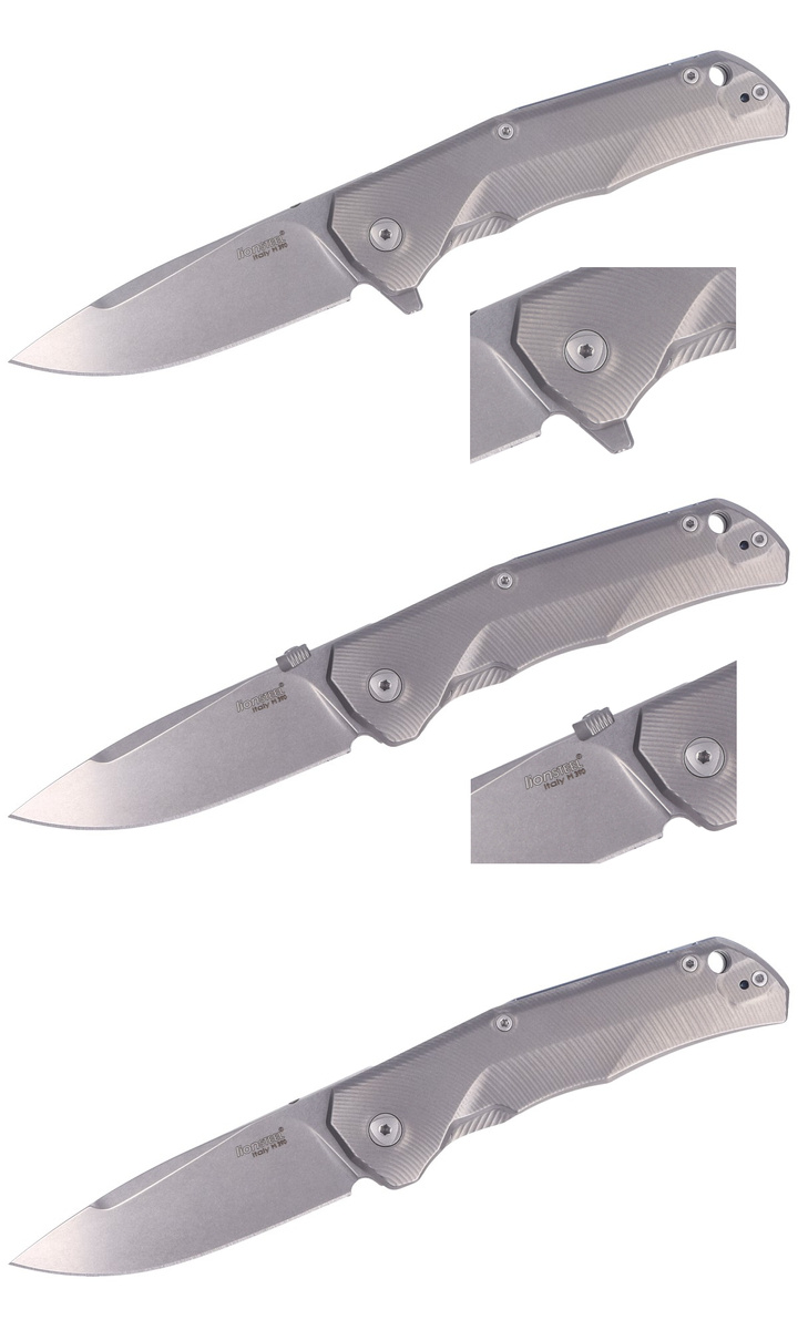 T.R.E. Grey Titanium / Blue Ti, Stone Washed doskonały nóż E.D.C. włoskiej manufaktury LionSteel, wyposażony w system Three Rapid Exchange. Dodatkowo w zestawie klucz KKS 68, brelok z bitami Torx T6 i Torx T8 do regulacji foldera, Flippera, dysku Thum Stud oraz klipsa. Zdobywca prestiżowej nagrody noża roku Overall Knife of The Year magazynu Blade na targach Blade Show 2015.