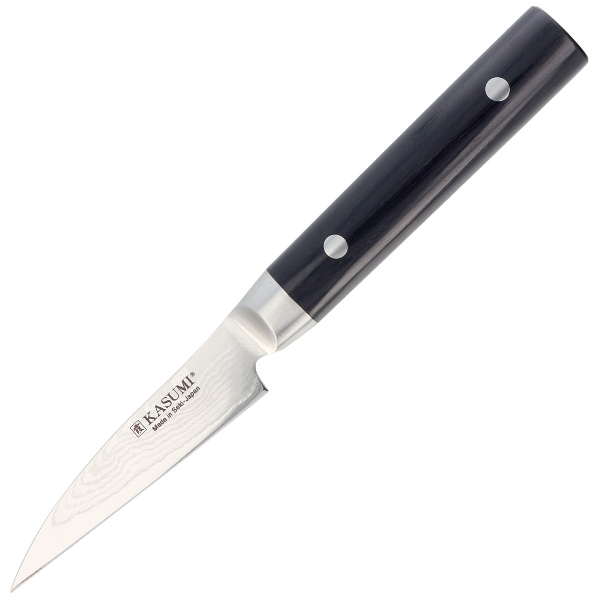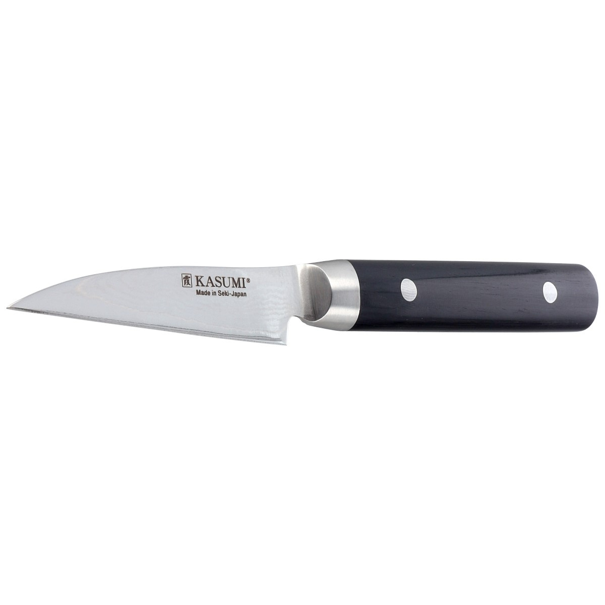 Kasumi Damascus Paring z rdzeniem ze stali nierdzewnej VG-10 wykończony 32 warstwowym damastem. Wykonany tymi samymi metodami co miecze samurajskie, z wygodną, europejską rękojeścią z drewna pakka. Uwaga!!! Bardzo ostre!!! W 2002 roku noże "KASUMI" zdobyły nagrodę Design Plus Award na targach Ambiente Messe w Niemczech.