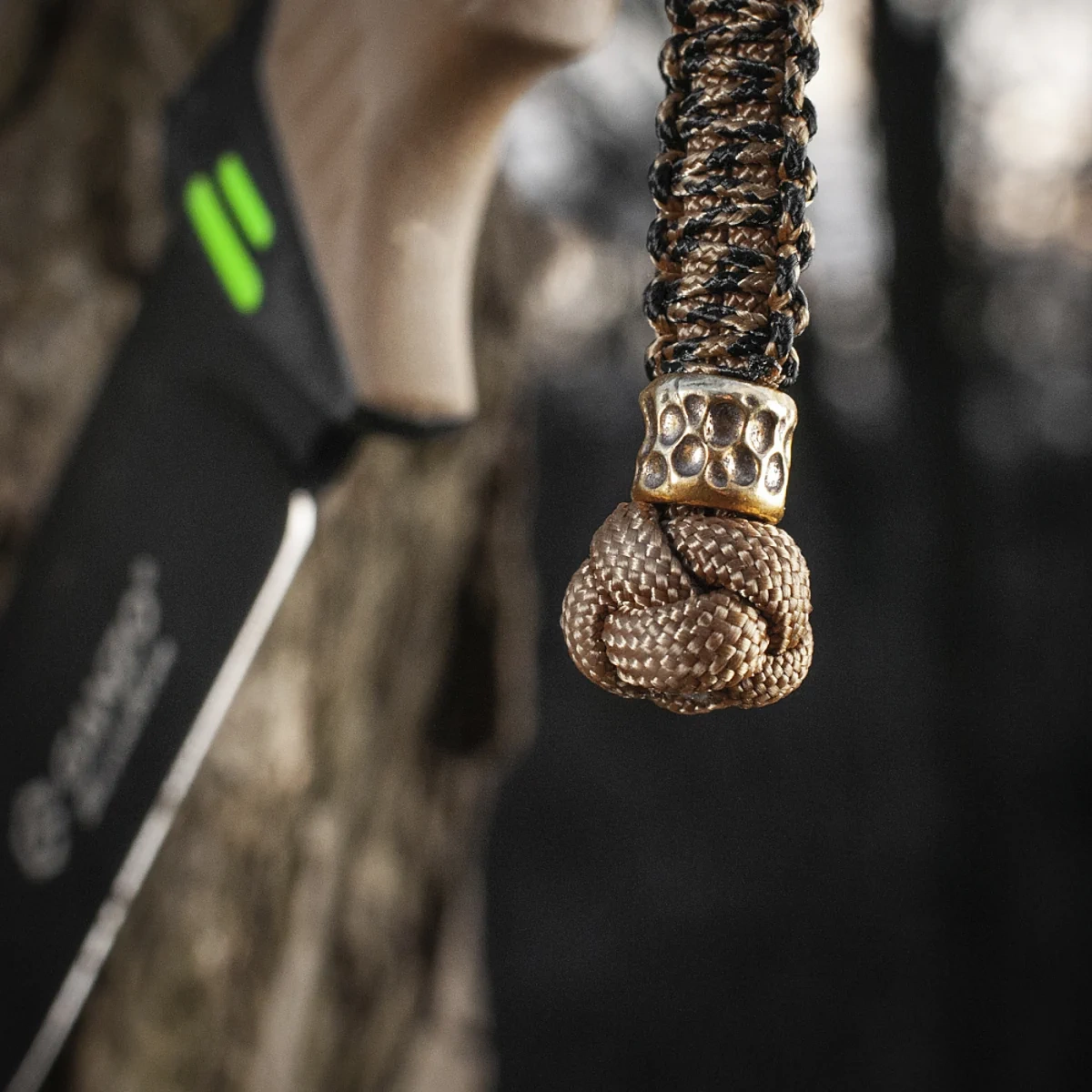 • M-Tac Scandinavian Granule Coyote, przywieszka do noża, latarki, breloka, wykonana z paracordu, zakończona metalowym koralikiem ze skandynawskimi wzorami. Oprócz walorów estetycznych, przedłuża rękojeść noża ułatwiając wyciągnięcie go z kieszeni.