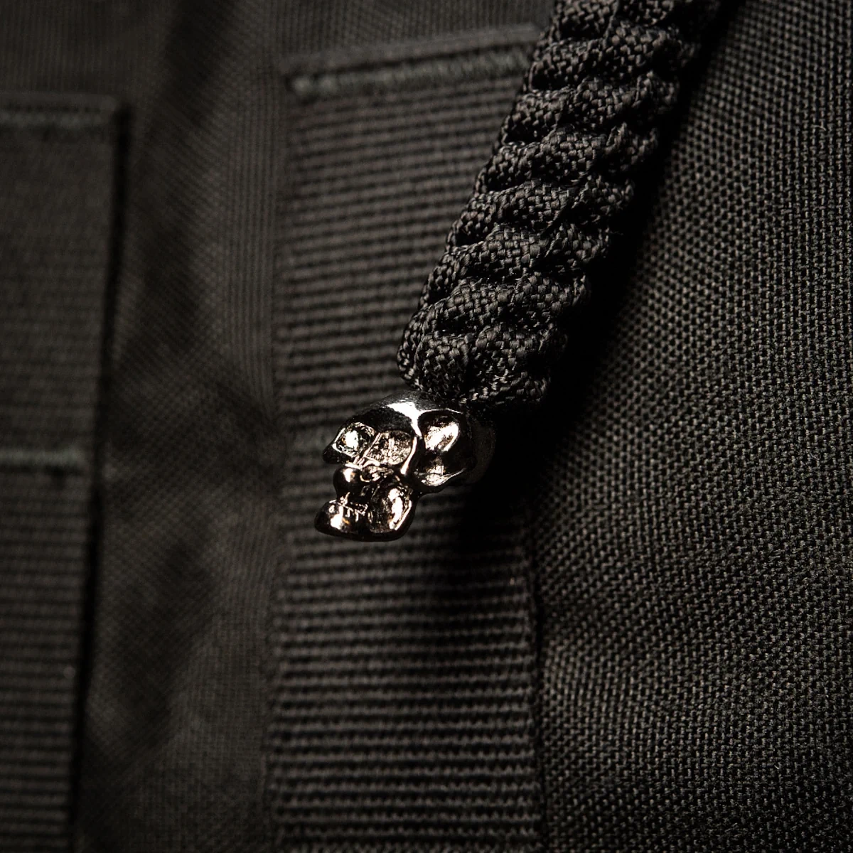 M-Tac Helix Skull Black, przywieszka do noża, latarki, breloka, wykonana z paracordu, zakończona metalową czaszką. Oprócz walorów estetycznych dekoracyjnego splotu, przedłuża rękojeść noża ułatwiając wyciągnięcie go z kieszeni. Znakomicie również się sprawdza jako przedłużenie zamka w kurtce pozwalając na wygodne używanie zamka nawet w grubych rękawicach.