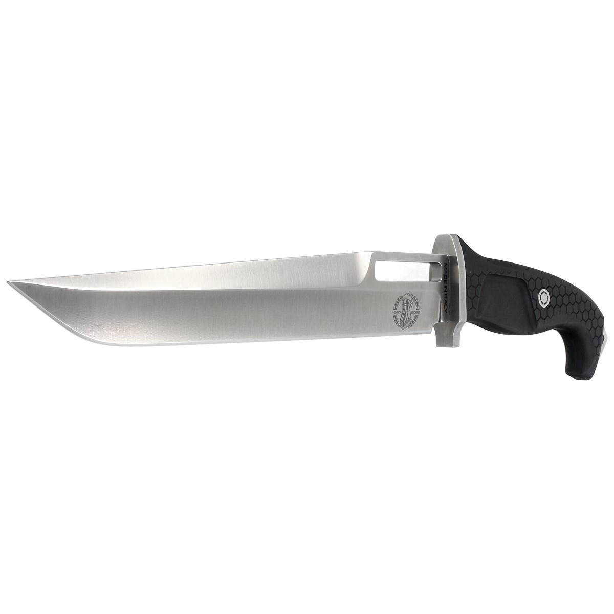 Głownia - o agresywnym profilu Spear Point, grubości 6.3 mm, długim, zwiększającym właściwości przebijające fałszywym ostrzem oraz charakterystycznym dla tego modelu otworze w klindze poprawiającym wyważenie. Wysoki, płaski szlif daje doskonałą geometrię krawędzi tnącej oraz ekstremalną wydajność cięciaU nasady klingi jednostronny jelec chroniący dłoń przed ześlizgnięciem się na ostrze. Dynamiczne linie głowni są znakomicie podkreślane przez eleganckie wykończenie Satin.