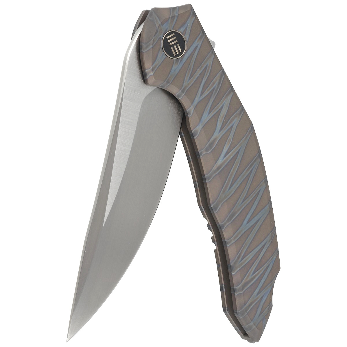Nóż składany WE Knife Merata LE No 149/200 Tiger Stripe Titanium, Hand Rubbed Satin CPM 20CV by Anton Tkachenko (WE22008A-3)