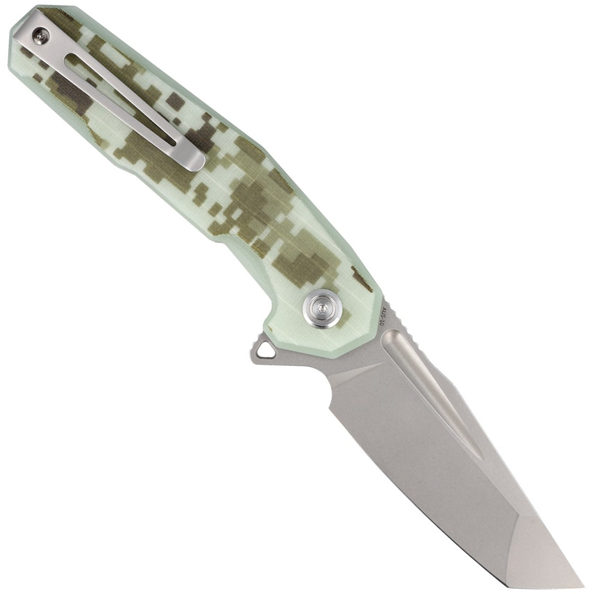 - Carve Digital Camo G10, Bead Blasted solidny folder w taktycznym stylu. Głownia Tanto ze stali AUS-10, pivot z łożyskiem kulkowym, szybkie otwieranie Flipperem. Okładziny w pikselowym militarnym cyfrowym kamuflażu. Jakość z której słynie Kubey. Bestseller