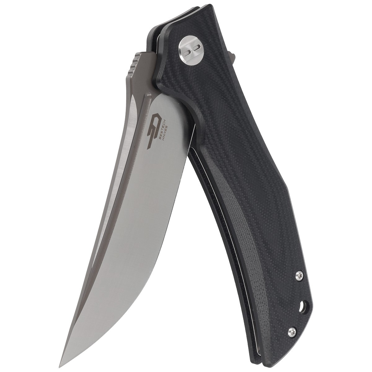 Scimitar Black G10, Gray / Satin podręczny folder EDC o lekko egzotycznym wyglądzie. Wykonany z charakterystyczną dla firmy Bestech starannością. Na rękojeści okładziny z G10, głownia ze sprawdzonej stali narzędziowej D2, a wszystko to w znakomitej cenie!