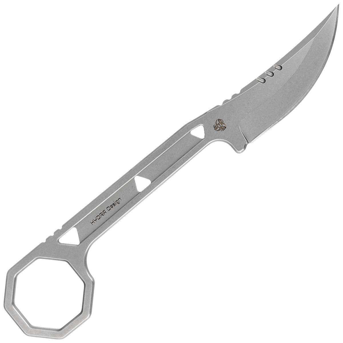 - 12.7 Trailing Steel Handle, Bead Blasted, nóż ze stałą głownią typu neck. Projekt Allesandry De Santis z HYDRA Design. Monolityczna konstrukcja ze stali nierdzewnej 14C28N, kydexowa pochwa wyposażona w klips umożliwiający noszenie w kieszeni. Hit!