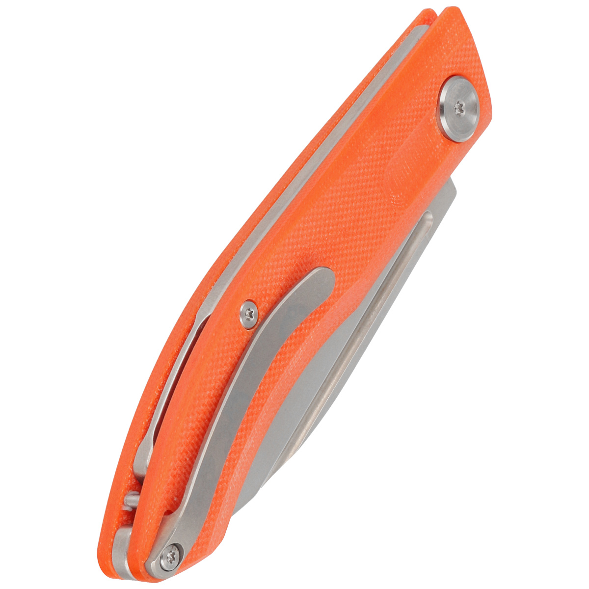 Stella Orange G10, Stonewash jeszcze lżejsza wersja noża składanego z rodziny Stella, efekt współpracy polskiego projektanta Jakuba Wieczorkiewicza (Poltergeist Works) i firmy RealSteel Knives. Rękojeść z G10, stal nierdzewna VG-10. Lekki i kompaktowy, nowoczesny gentlemans folder!