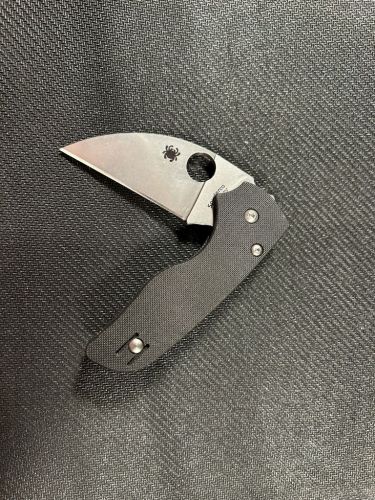 Głownia - o profilu Wharncliffe z ekstremalnie ostrym czubkiem. Idealnie prosta krawędź tnąca zapewnia wyjątkową wydajność cięcia z pełną siłą, przenosząc moc na sztych ostrza, gwarantując lepszą wytrzymałość punktową. Ostrze gładkie Plain wyprowadzono redukującym wagę noża szlifem płaskim pełnym (Full Flat Grind). Powiększone 14 mm okrągłe wycięcie SpyderHole (patent Spyderco) do otwarcie noża. Index Finger Choil (karbowane profilowane podcięcie pod palec wskazujący między rękojeścią a krawędzią tnącą), ułatwia operowanie nożem.