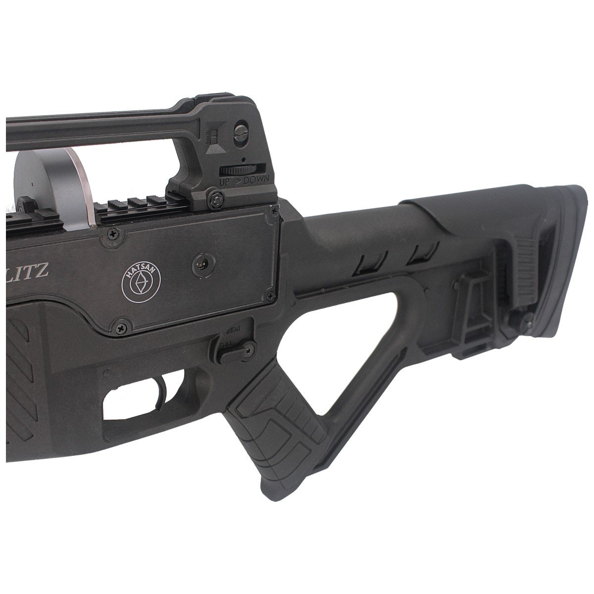 BLITZ, wielostrzałowa wiatrówka PCP firmy Hatsan Arms wyposażona w przełącznik rodzaju ognia (selektor ognia) Full / Semi. W pełni automatyczny FullAuto (ogień ciągły) oraz półautomatyczny SemiAutoAction (automatyczne przeładowanie). BLITZ zapewnia automatyczne przeładowanie po każdorazowym naciśnięciu języka spustowego (tylko wersja FAC*) oraz szybkie oddawanie celnych strzałów na znaczne odległości bez potrzeby zmiany / korekty linii celowania. Dostępny w kalibrach: .177 (.177), .22 (5.5 mm), .25 (6.35 mm) oraz .30 (7.62 mm).