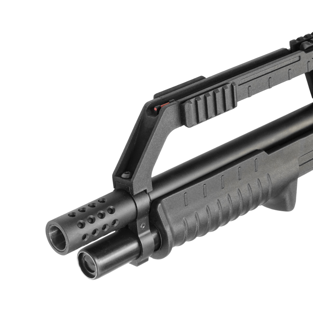 Gumowany chwyt pistoletowy zapewnia pewne trzymanie. Uchwyt transportowy wyposażony jest w szyny picatinny 22 mm oraz przyrządy celownicze. Światłowodowa muszka TruGlo gwarantuje łatwe zgranie przyrządów. W pełni regulowana szczerbinka posiada możliwość przełączenia na tryb przeziernikowy.