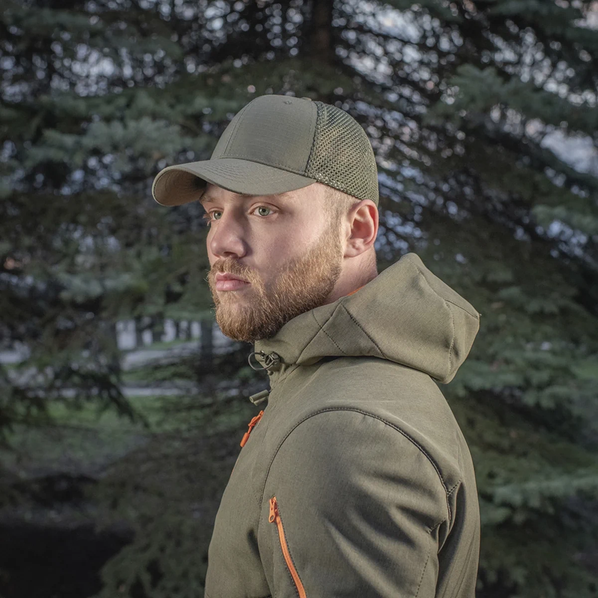 Mesh Flex Rip-Stop Army Olive odporna na zużycie, komfortowa czapka bejsbolówka ze sztywnym daszkiem chroniącym przed wiatrem, palącym słońcem i promieniowaniem UV. Stylowy dodatek do miejskiego stroju, a także podczas survivalowych oraz outdoorowych wypadów poza miasto.