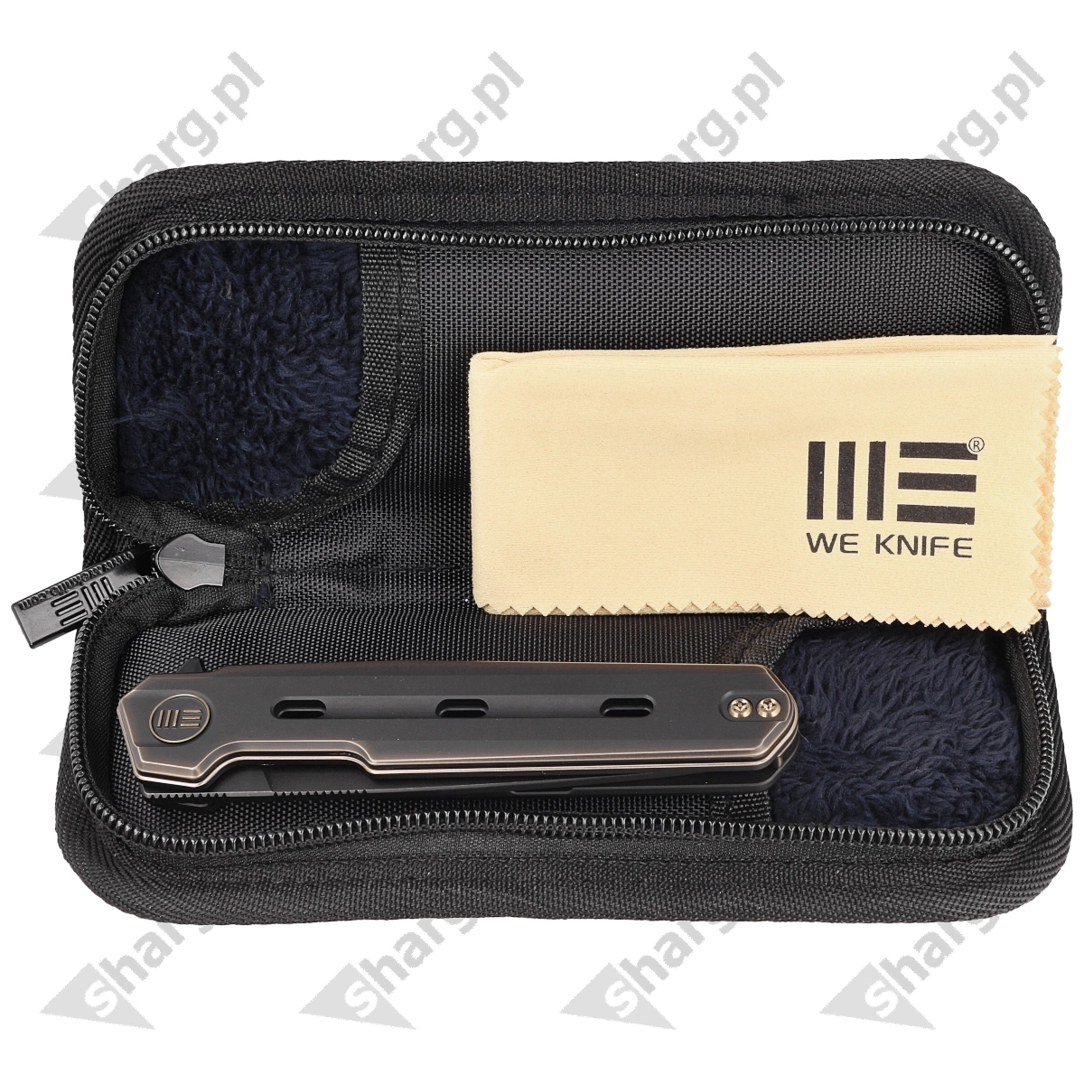 - Navo Bronze / Black Titanium, Black Stonewashed, elegancki nóż składany EDC projektu polskiego knifemakera, Ostapa Hela. Łatwy do przenoszenia, doskonała stal ostrza 20CV, rękojeść z przyjemnego w dotyku tytanu, nieprawdopodobne wykonanie WE Knife!