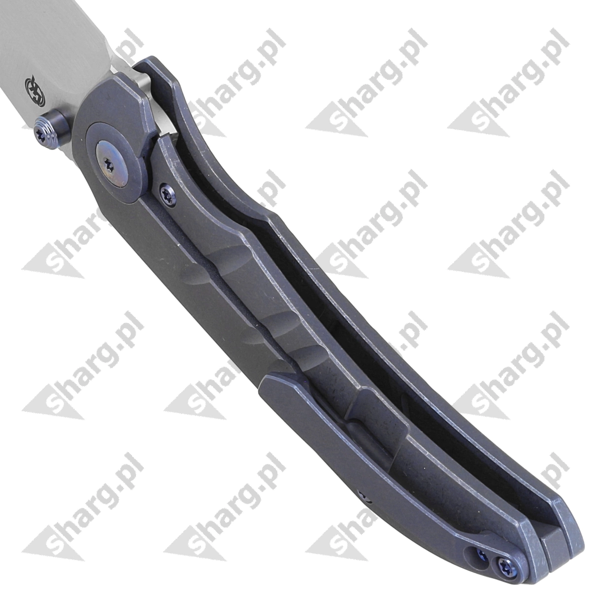 Rękojeść - z tytanu 6AL4V anodyzowanego na kolor niebieski. Konturowanie okładek eliminuje ostre krawędzie. Okładziny połączono ze sobą przy pomocy tytanowego backspacera. Górna część backspacera z szeroko rozmieszczonymi "ząbkami". Tekstura i frezowanie powierzchni polepszają pewność uchwytu. Prostota i solidność konstrukcji dają pewność wieloletniego użytkowania. Klips jednopozycyjny (prawa), wykonany z tytanu, umożliwia przenoszenie noża w pozycji tip-up.