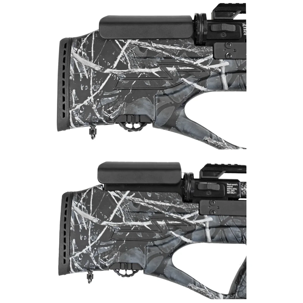 Wyposażenie dodatkowe - dwa metalowe obrotowe bączki do mocowania zawieszenia taktycznego. Końcówka Quick-Fill do szybkiego napełniania kartusza powietrzem za pomocą pompki butli technicznej / nurkowej (300 bar).