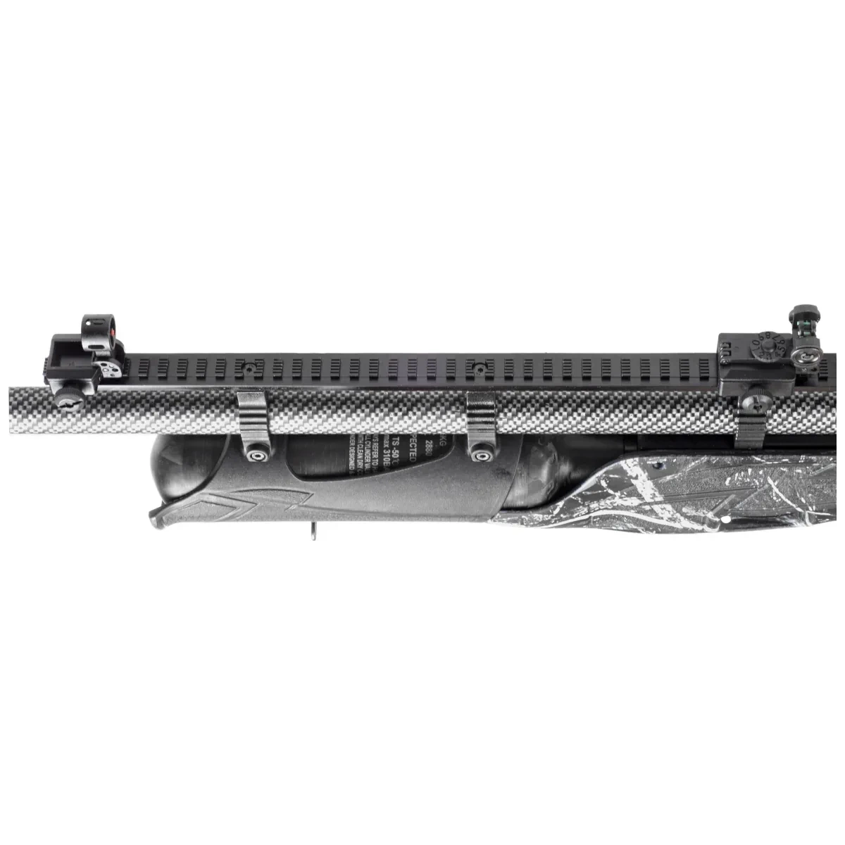 Szyna montażowa - wersja wiatrówki z podwójną długą szyną montażową 11 mm / 22 mm. Szyna zgodna ze standardem MIL-STD 1913 (picatinny lub Weaver) pozwala na montaż dowolnego celownika optycznego. Dodatkowa szyna picatinny na spodzie chwytu osady.