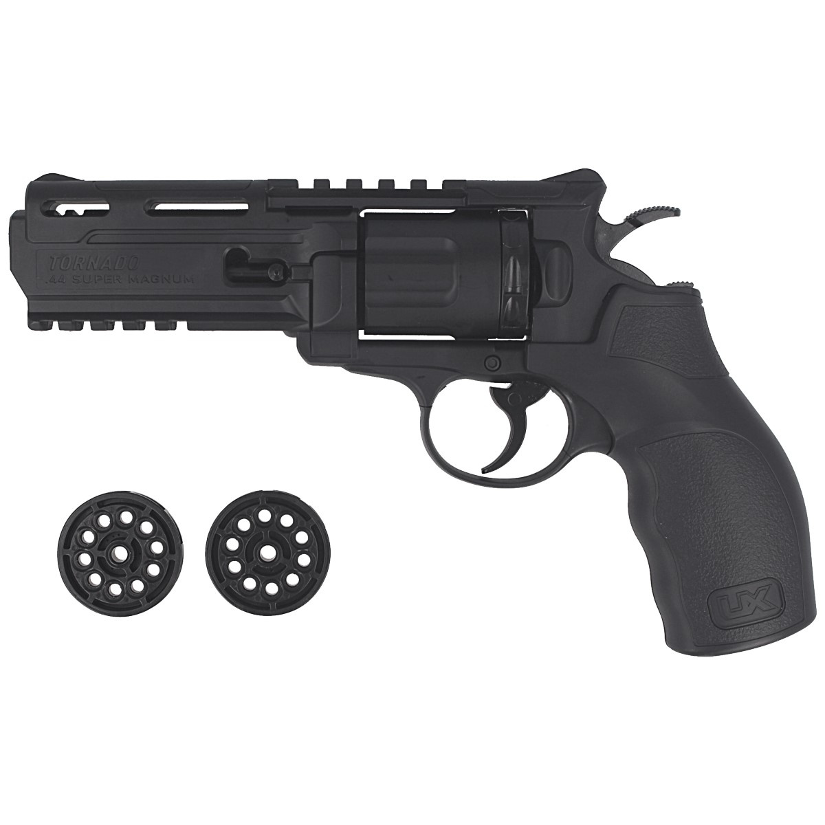 - Umarex Tornado 4,5 mm BB CO2 to efektowny rewolwer wiatrówkowy, strzelający śrutem BB'S, wyposażony w dwie szyny akcesoryjne oraz zestaw zapasowych magazynków.