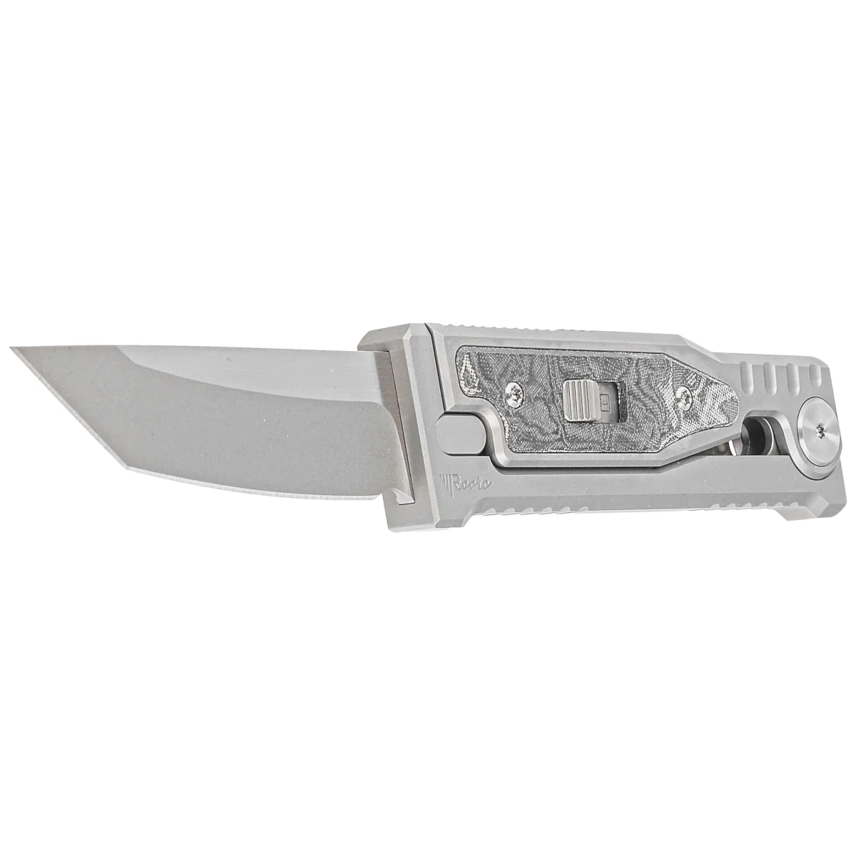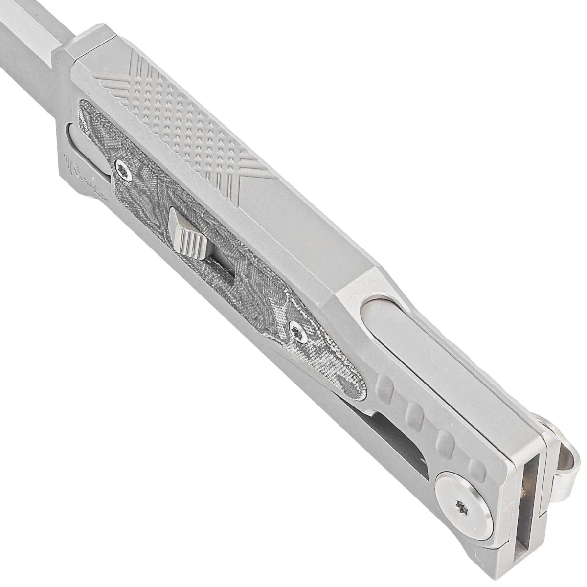 Nóż grawitacyjny Reate Mini EXO OTF Gravity T/E Bead Blasted Titanium/Burl Linen Micarta, Stonewashed CPM 3V