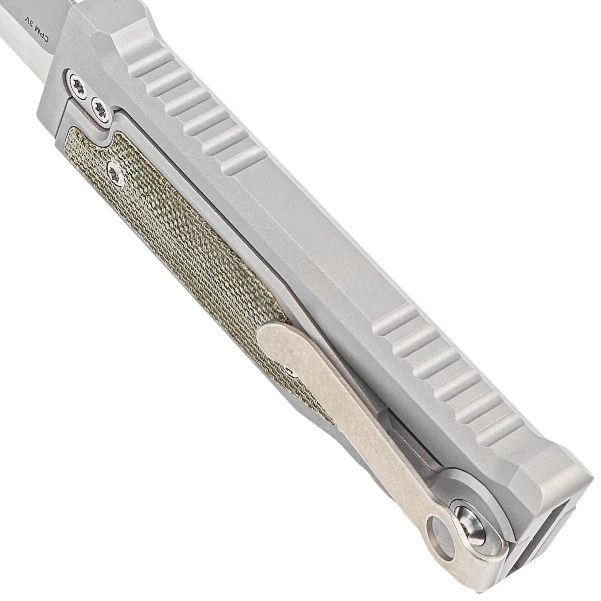 Nóż grawitacyjny Reate Mini EXO OTF Gravity T/E Bead Blasted Titanium/Green Micarta, Stonewashed CPM 3V