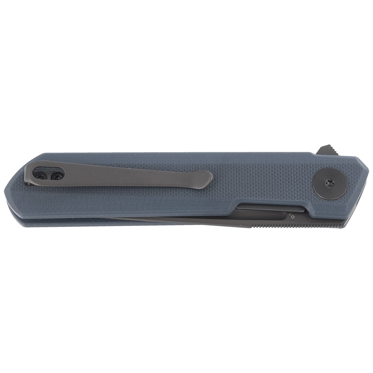 Głownia - typu Drop Point o długiej krawędzi tnącej, pokryta powłoką DLC. Niewielka grubość klingi w połączeniu z wysokim, płaskim szlifem daje doskonałą geometrię krawędzi tnącej oraz ekstremalną wydajność cięcia. Ceramiczne łożyska kulkowe wspomagają płynną pracę mechanizmu otwierającego klingę, którą można otworzyć za pomocą szybkiej płetwy flippera (index-finger flipper). Po otwarciu płetwa tworzy mini-gardę zapobiegającą ześlizgnięciu się dłoni na ostrze. Na grzbiecie klingi upper jimping, karbowane oparcie pod kciuk. Całość blokowana jest solidną blokadą Liner Lock.