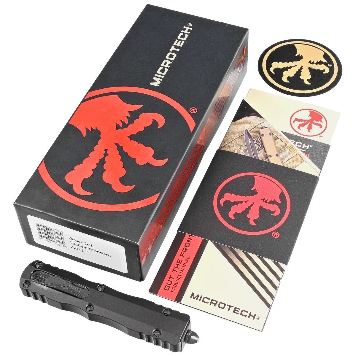 Dirac® - pierwszy automat OTF (Out The Front) D/A (Double Action) w ofercie Microtecha z suwakiem slidera umieszczonym w zagłębieniu rękojeści. Unowocześniona, ergonomiczna rękojeść z zakrzywionymi liniami podobnymi do HALO®. Zastosowano w tej linii charakterystyczne rozwiązania Microtecha® o ultra wysokiej jakości, takie jak opatentowane śruby, innowacyjny mechanizm wewnętrzny i zbijak do szyb. Przy całkowitej długości 7,25 cala, Dirac® doskonale się nadaje na nóż codziennego użytku (EDC).