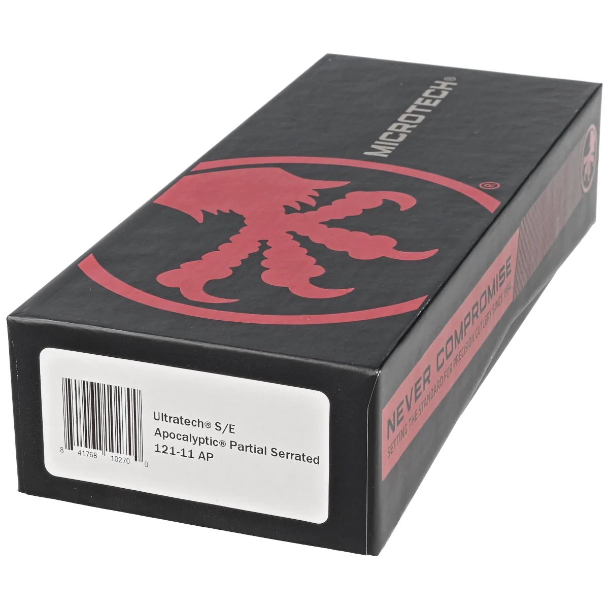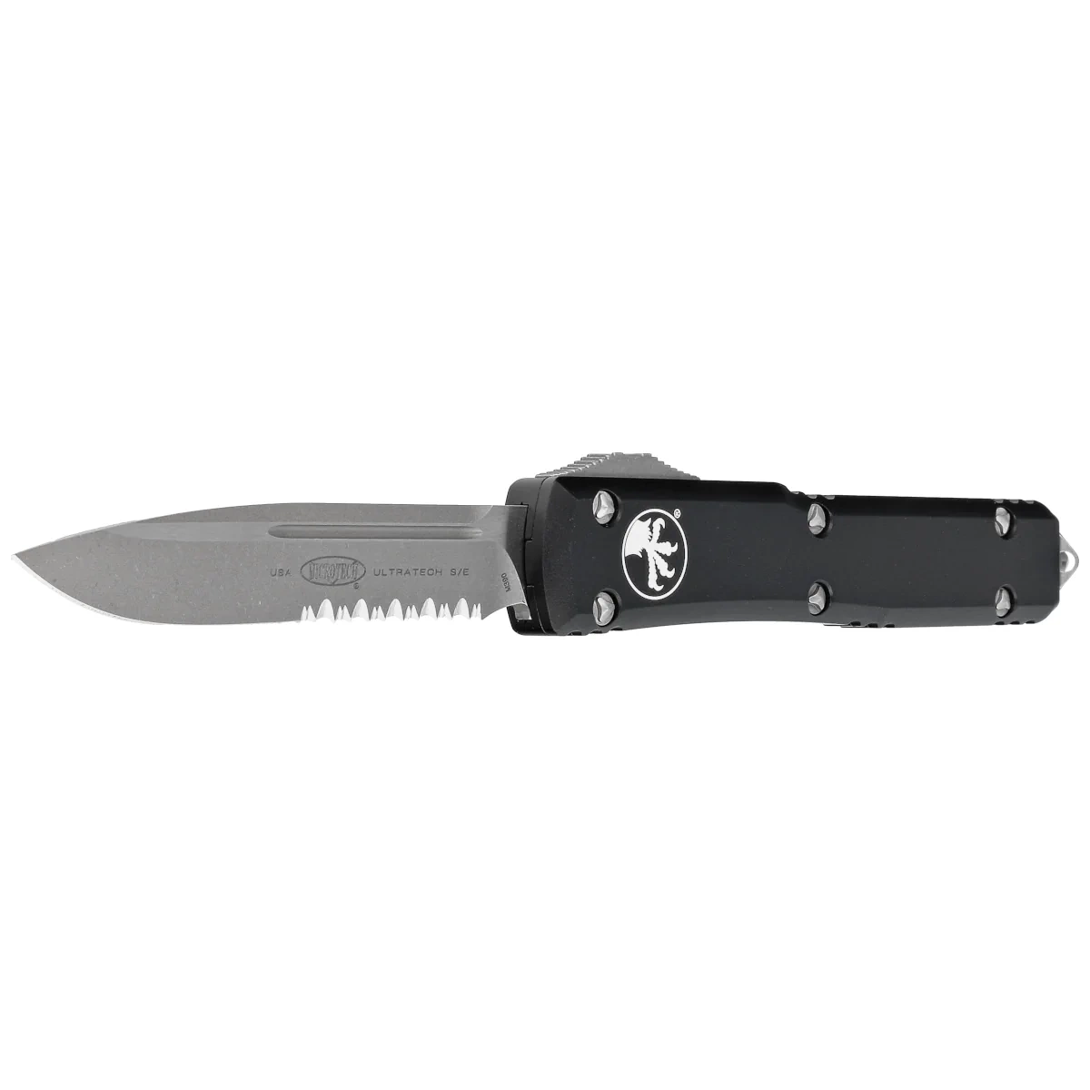 - Ultratech S/E Black Aluminium, Apocalyptic P/S to pełnowymiarowy nóż automatyczny OTF z serii Ultratech. Pracujący w trybie D/A, wyposażony w piekielnie szybki mechanizm wysuwający ostrze. Projekt Tony Marfione knifemakera i właściciela Microtech Knives.