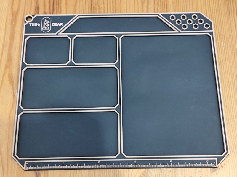 - Wysokiej jakości mata serwisowa, podkładka z silikonu, z wydzielonymi przegródkami na części, śruby i inne składniki budowy noża. Dodatkowo miejsce na najczęściej używane bity używane przy naprawach i modyfikacjach noży.