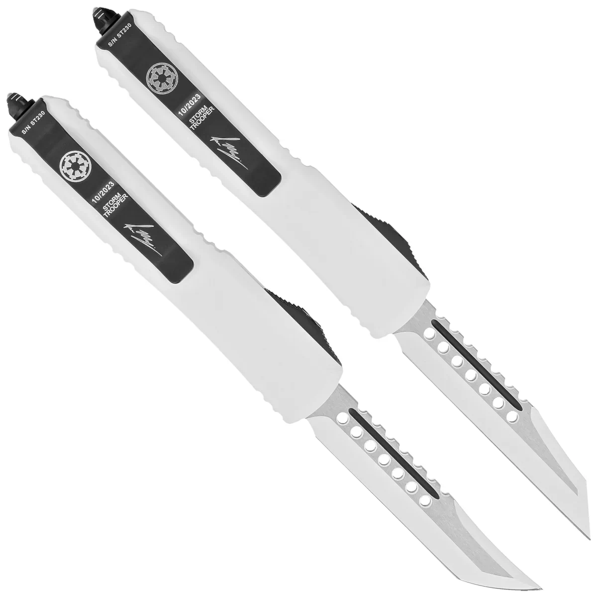 Noże automatyczne OTF Microtech Ultratech Storm Trooper Hellhound/Warhound Set Signature White Aluminium, White M390 by Tony Marfione (119-1SETSTDS)