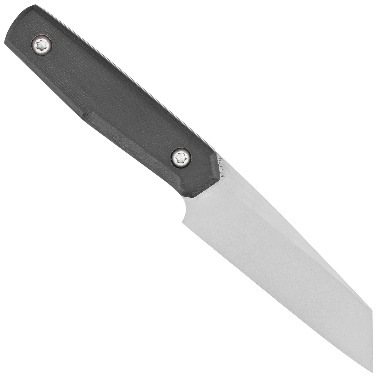 Głownia - niezwykle ostra o profilu Wharncliffe, geometryczny kształt jest idealny do wszelkich prac. Wykończone eleganckim satynowaniem ostrze Plain wyprowadzono wysokim szlifem płaskim (Flat Grind), wysoki szlif daje doskonałą geometrię krawędzi tnącej oraz ekstremalną wydajność cięcia. Wydłużona "broda" chroni dłoń przed zsunięciem się na ostrze.
