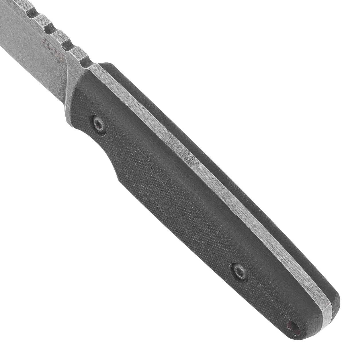Głownia - niezwykle ostra o profilu Drop Point, z zaznaczonym brzuchem, idealna do wszelkich prac. Wykończone maskującą drobne rysy metodą Acid Stonewashed, ostrze Plain wyprowadzono wysokim szlifem płaskim (Flat Grind), wysoki szlif daje doskonałą geometrię krawędzi tnącej oraz ekstremalną wydajność cięcia. Powiększony jelec chroni dłoń przed zsunięciem się na ostrze. Na grzbiecie klingi upper jimping, karbowane oparcie pod kciuk.