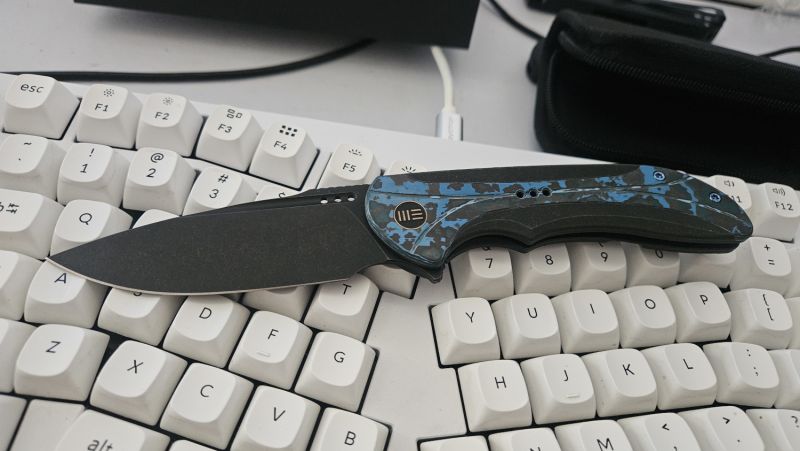 Opinie o Nóż składany WE Knife Equivik Black Titanium/Arctic Storm Fat Carbon, Black Stonewashed CPM 20CV (WE23020-4)
