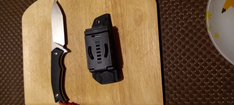 Pochwa - z kydexu, przedłużana, chroniąca głownię wraz z częścią rękojeści. Dzięki montowanemu do niej klipsowi typu Tek-Lok możemy niemal dowolnie mocować nóż do paska czy oporządzenia.
